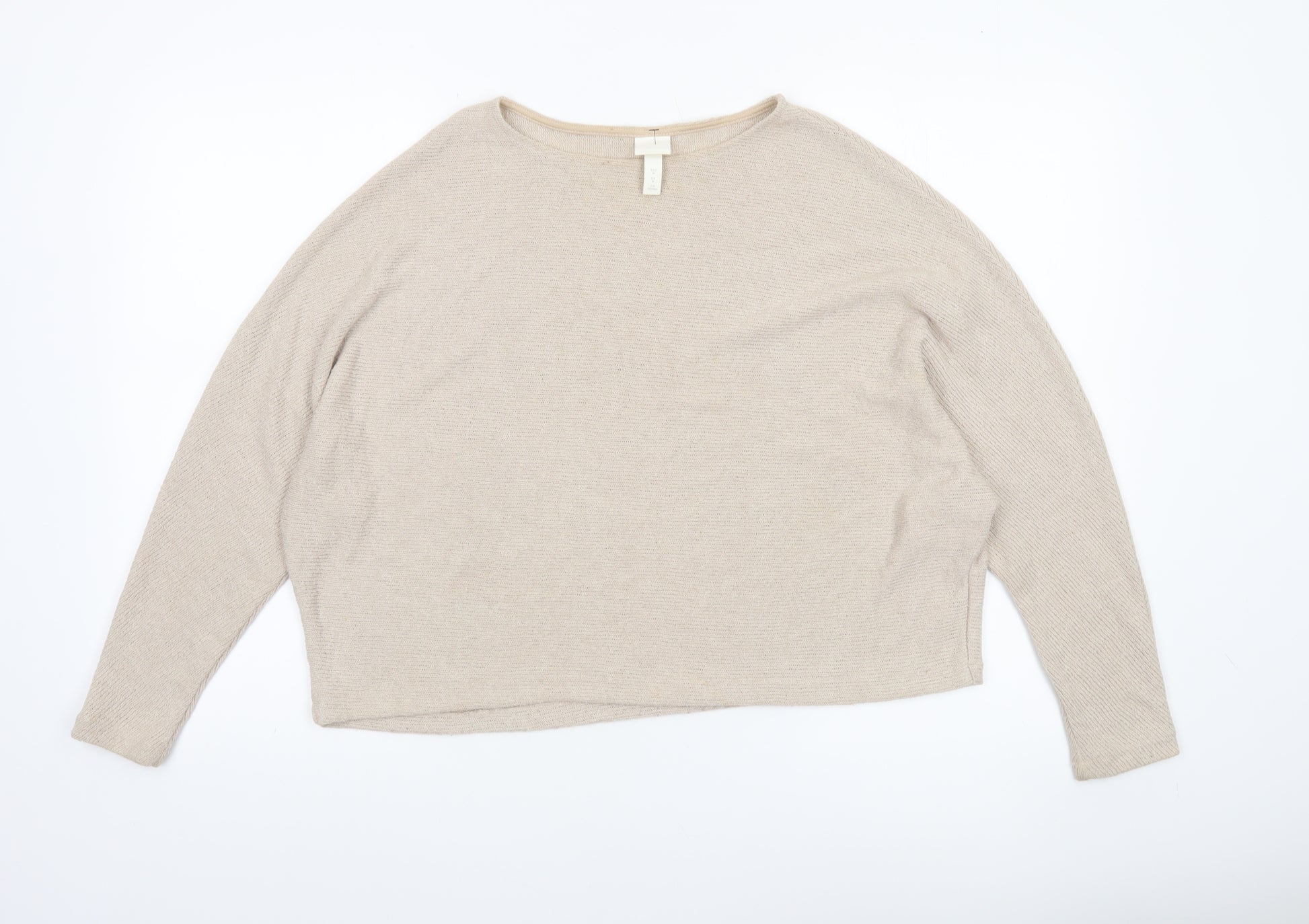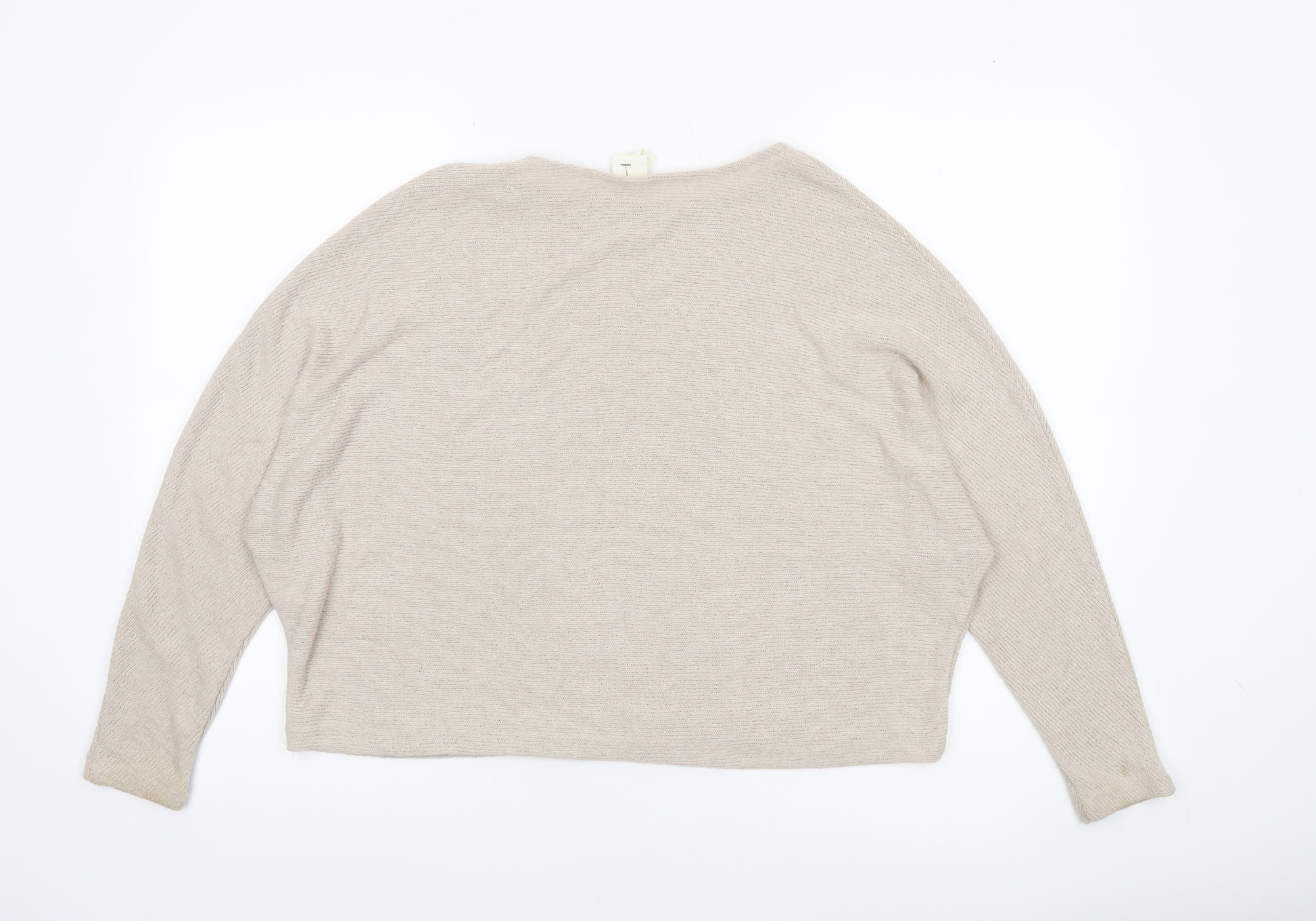 Women’s Beige Boat Neck Relaxed Fit Knit Jumper Size M