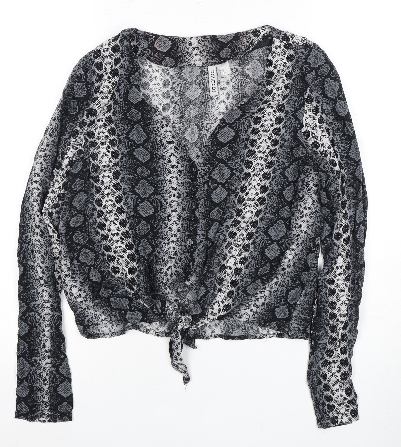 Elevate your wardrobe with this chic H&M Divided Women's Blouse. Designed for fashion-forward individuals, this top combines comfort with style, featuring a captivating animal print that never goes out of fashion. Made from high-quality 100% viscose, it offers a lightweight feel, perfect for autumn and winter. The elegant black hue adds versatility, making it suitable for various occasions from casual outings to more formal settings. The garment's regular fit, long sleeves, and woven fabric type provide both sophisticated appearance and comfortable wear. The V-Neck neckline adds a charming touch, while the button closure ensures ease of wear. This blouse is machine washable, ensuring easy maintenance. Ideal for everyday wear or special occasions, it's a staple item for any well-rounded wardrobe. Whether paired with jeans for a relaxed look or dressed up with a skirt, this H&M blouse promises to be your go-to piece this season. Perfect as a gift or to treat yourself, it's a fashionable choice for any woman who appreciates quality and style.