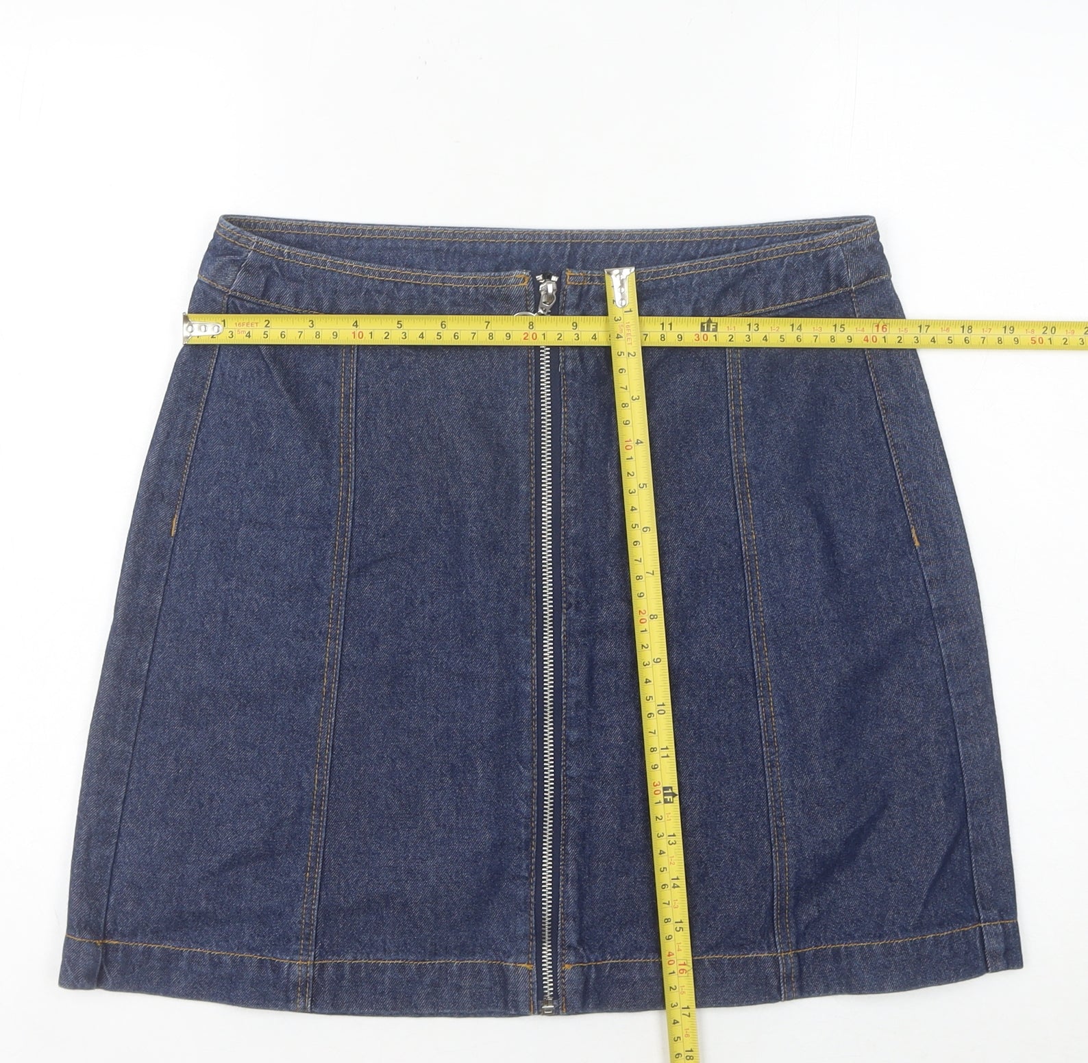 Women’s Blue Denim Short Straight Skirt Size 12 Mid Rise Zip Casual