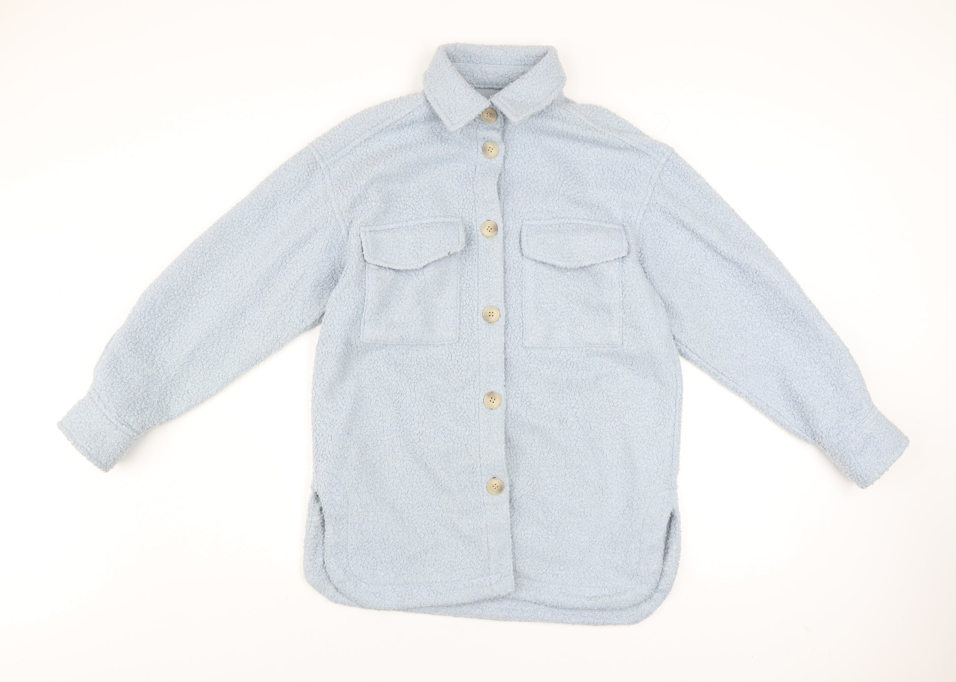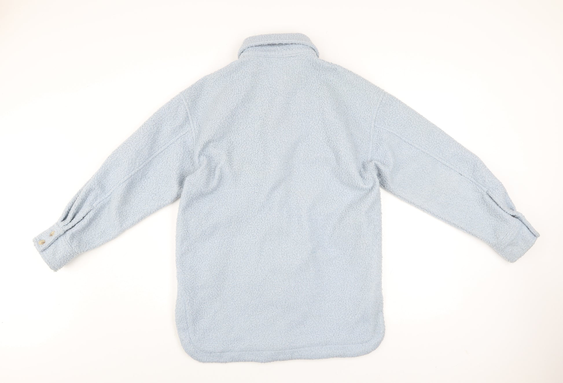 Women’s Blue Fleece Button Jacket XS Casual Mid-Length