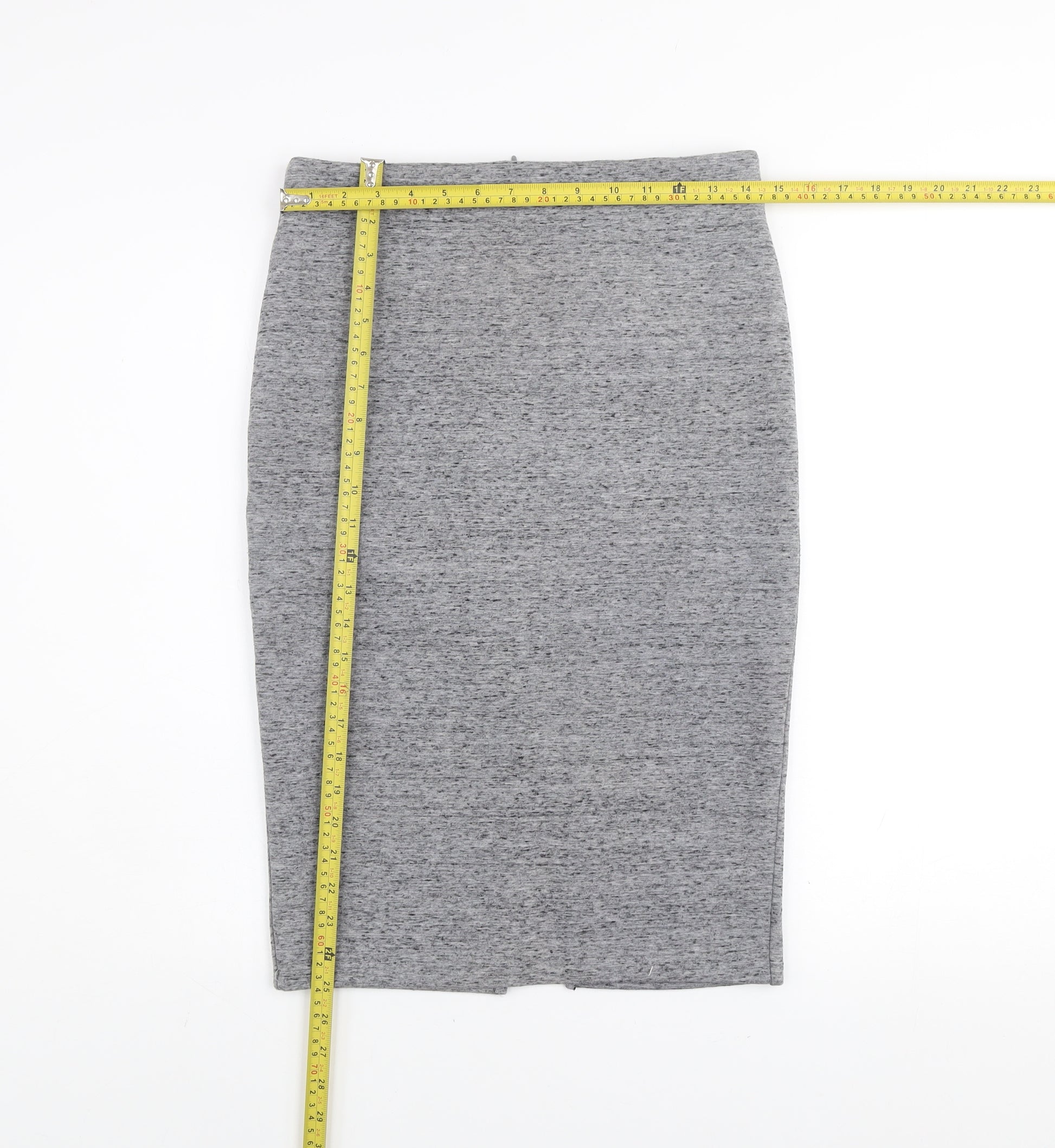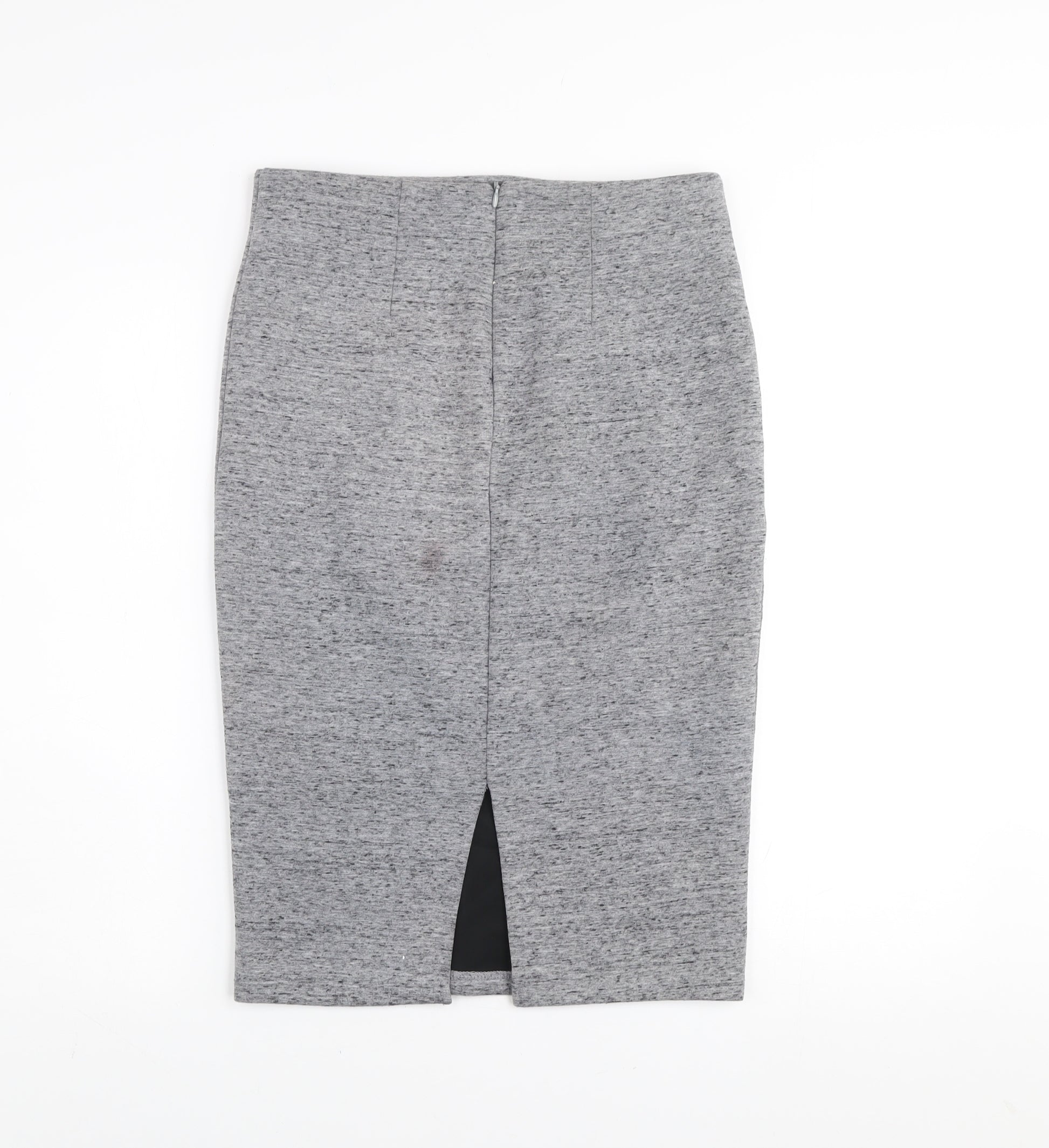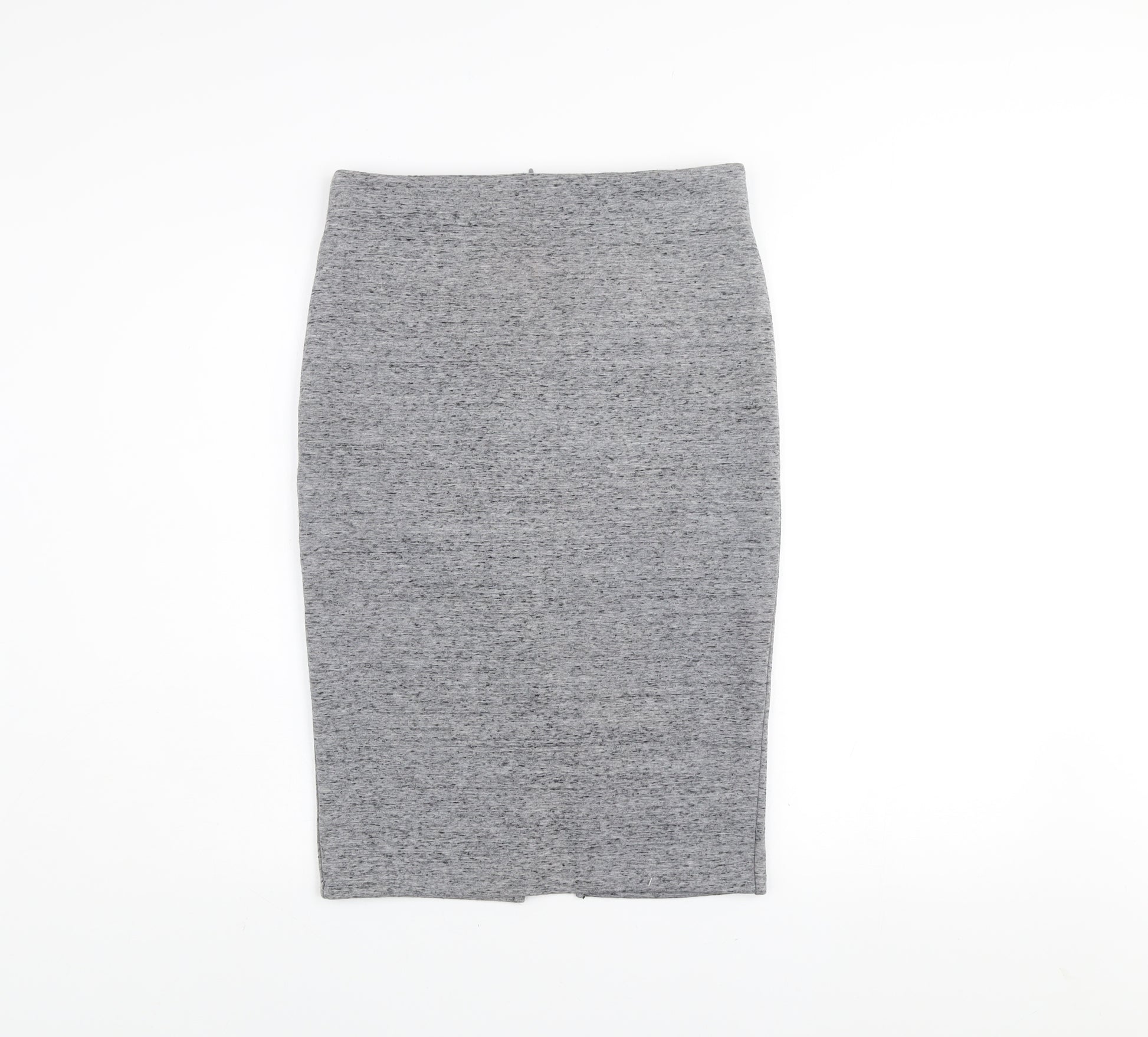 Women’s Grey Jersey Pencil Skirt Size S Midi High Waist Stretch
