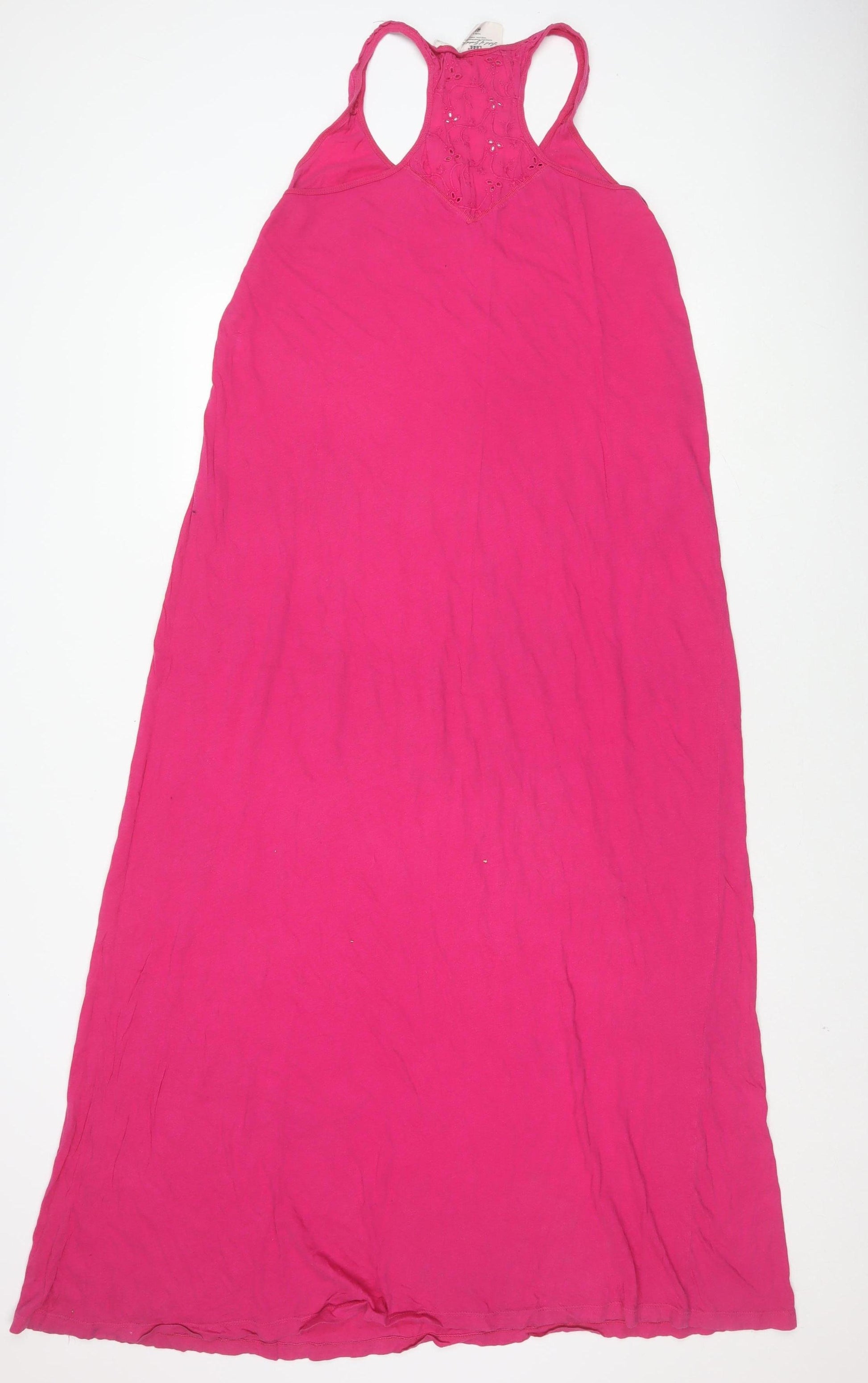 Elevate your summer wardrobe with this H&M Women's Pink Halter Dress. Perfect for casual outings, this sleeveless dress promises effortless style and comfort. The vibrant pink hue is ideal for sunny days, while the halter neckline adds a touch of elegance. Designed with a sleeveless cut, it's perfect for keeping cool during the warmer months. Sized at UK 12, it provides a comfortable fit for the modern woman. Whether you're heading to a brunch, beach day, or a casual evening out, this dress is a versatile addition to your closet. Pair it with your favourite sandals or heels to complete your look. Despite being in excellent used condition, the absence of original retail tags means you can grab this chic piece at a fantastic price. Don't miss out on the opportunity to enhance your collection with this fashionable and functional dress.