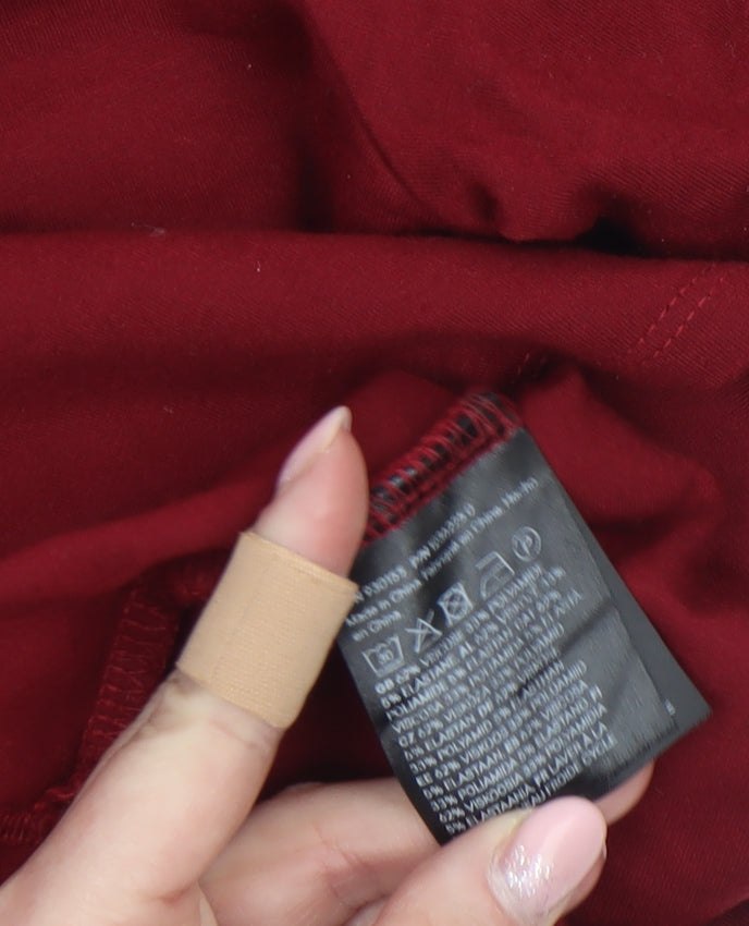 Enhance your casual wardrobe with this stylish H&M women’s off-the-shoulder top in a rich red shade. Designed for comfort and feminine appeal, this piece features a flattering bardot neckline that beautifully showcases the shoulders and neckline. Crafted from a soft jersey fabric composed of 95% cotton and 5% elastane, it offers both breathability and stretch, ensuring an easy and flattering fit for everyday wear. The short sleeves and regular fit make it perfect for warmer seasons like spring and summer, while the pullover style ensures effortless dressing. The smooth, solid colour provides versatility, allowing it to pair perfectly with jeans, skirts, or tailored shorts for a relaxed yet chic look. As part of H&M’s collection of wardrobe staples, this piece complements both casual daywear and dressier evening outfits when accessorised. Ideal for casual occasions, holidays, or a night out with friends, this top adds a pop of colour and confidence to your attire. In excellent pre-owned condition, it shows light wear but no visible flaws, maintaining the quality and softness synonymous with H&M jersey pieces. For easy maintenance, this garment is machine washable and designed for lasting wear. Whether styled simply or layered under a cropped jacket, this top can take you effortlessly from day to night. Embrace modern simplicity and comfort with this sleek red off-the-shoulder H&M women’s top — a must-have addition to your collection that brings a stylish, feminine edge to your seasonal rotation.