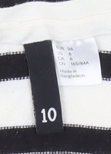 Add a chic touch to your wardrobe with this H&M women's multicoloured striped cardigan in size 10. Crafted for a regular fit, this knit cardigan features a classic V-neckline, perfectly balancing style and comfort. Ideal for casual occasions, it's made from 100% cotton, ensuring a lightweight and breathable feel, perfect for spring. The cardigan is button-accented, adding a hint of sophistication without compromising ease of wear. With long sleeves for added coverage, this cardigan offers versatility, perfect for layering over your favourite tops. Its machine washable nature ensures easy care, maintaining its excellent condition without hassle. Whether you're out for a casual day or need a comfy layer in a cooler breeze, this regular size 10 cardigan speaks to style and practicality. Explore endless outfit possibilities with this elegant yet simple piece, combining classic design with modern flair. Your ideal wardrobe staple for seasons to come.