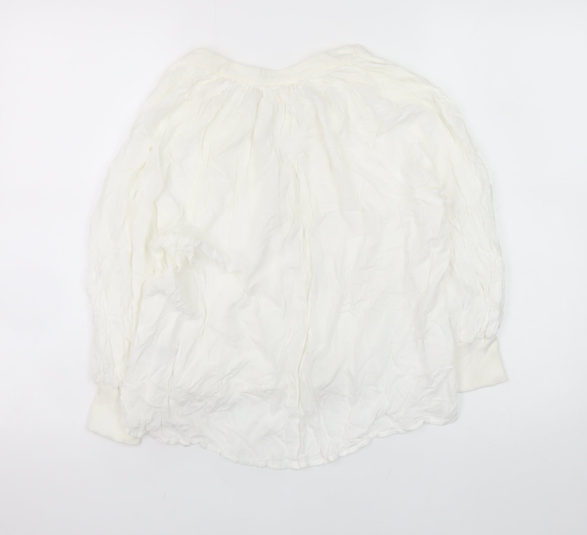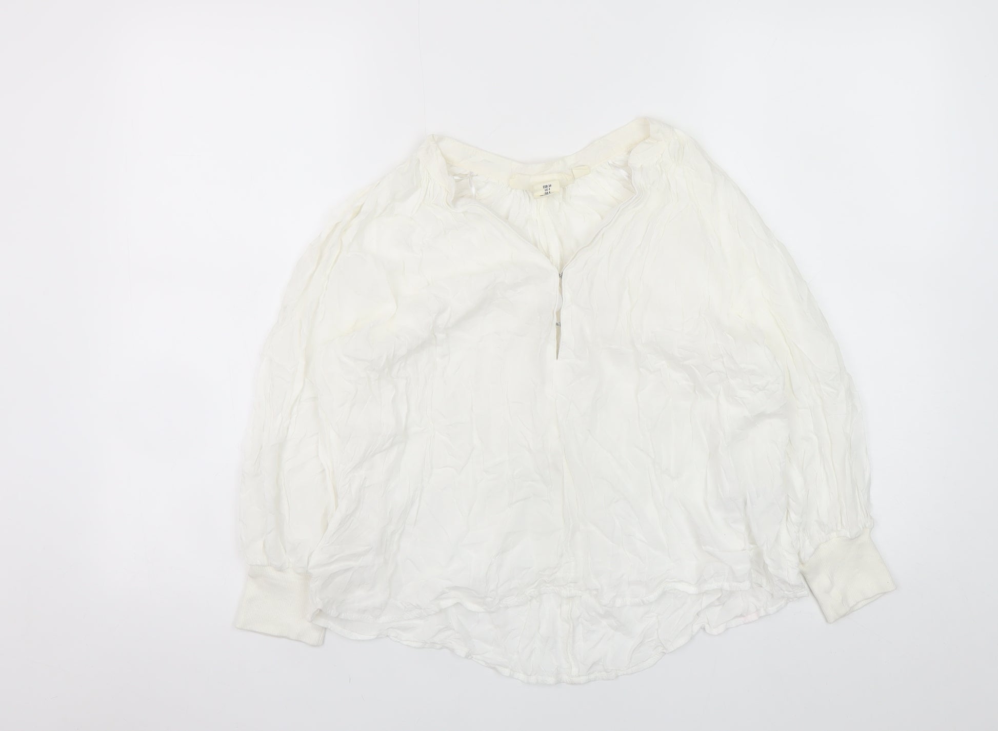 Women White Modal Tunic Blouse Size 8 Long Sleeve Zip Neck