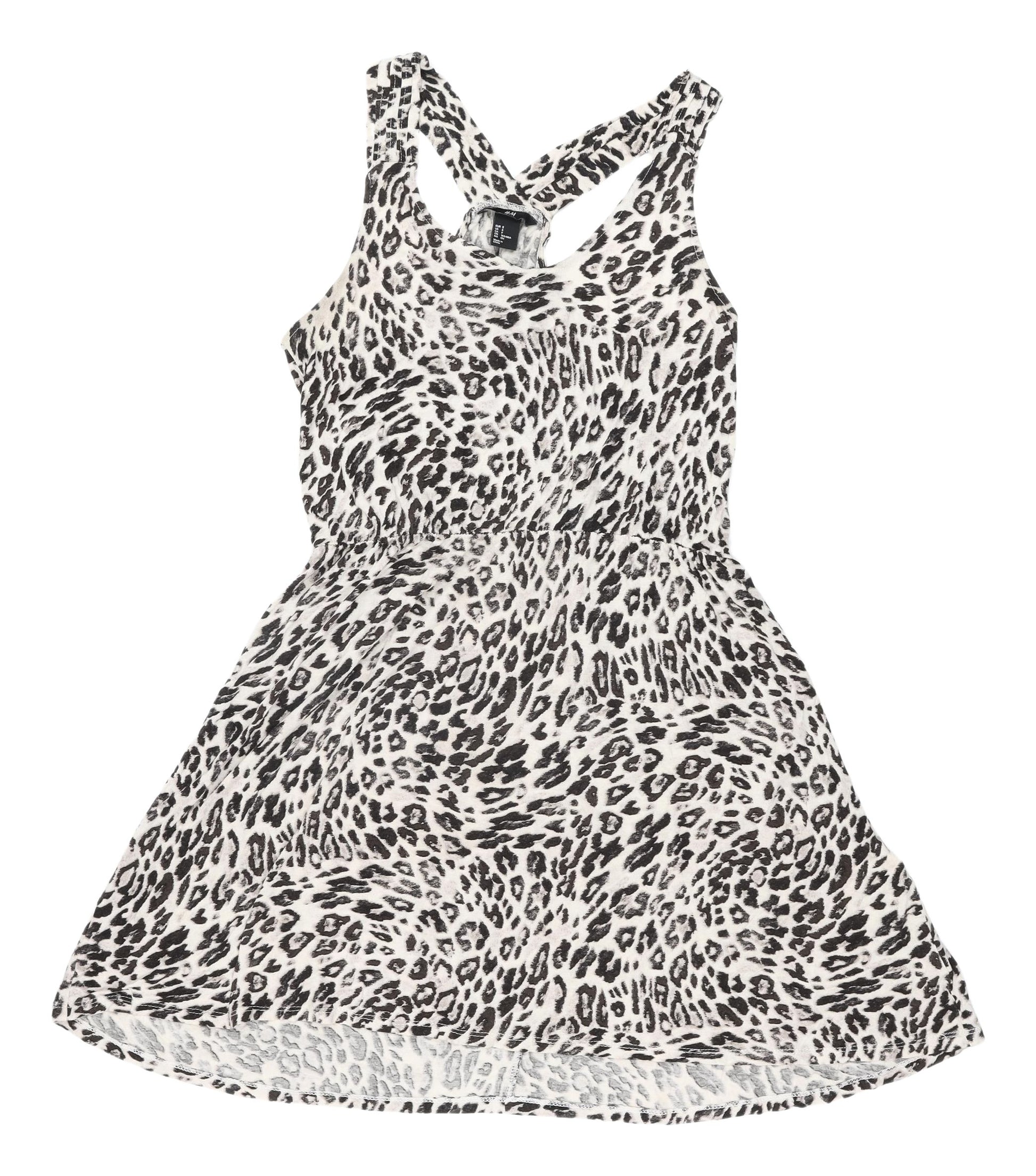 Embrace your wild side with this striking H&M Women's Animal Print Skater Dress, perfect for any casual occasion. Designed in a classic skater dress style, it offers a flattering silhouette that cinches at the waist before flowing out into a playful skirt. The dress is crafted from lightweight 100% viscose, providing comfort and breathability, making it ideal for warm summer days. This dress stands out with its bold, multicoloured animal print, allowing you to express your unique fashion sense. The sleeveless design and strappy sleeves add a modern touch, perfect for layering with a jacket or wearing solo during summer outings. The Regular size 12 fit ensures a flattering look for a range of body types. Its machine washable feature offers ease of care, making it a practical addition to your wardrobe. Perfect for casual meet-ups or a stylish everyday look, this dress combines comfort with standout style. Don't miss the chance to own this exciting piece that’s sure to turn heads. Add it to your collection today and step out with confidence.