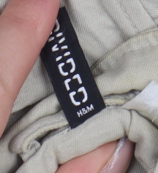Step into the season with this versatile H&M Women's Anorak Jacket, perfect for those unpredictable weather days. In a chic beige hue, this jacket exudes understated elegance paired with practical functionality. Crafted from 100% cotton, it provides a breathable and comfortable wear, ideal for casual outings or errands. The jacket is designed with a mid-length cut and long sleeves, providing adequate coverage and warmth during the transitional seasons of spring and autumn.This anorak features a convenient drawstring hood for added protection against wind or light rain, making it a reliable companion for any outdoor endeavor. With handy pockets for your essentials and a zip closure for easy wear, this jacket balances practicality with style effortlessly. Accentuated with button accents and a unique zip style, it maintains a modern and casual look, perfect for everyday wear.Its regular fit is tailored to flatter without compromising on comfort, making it a must-have in your wardrobe. Whether you're heading for a casual coffee meeting or a leisurely stroll in the park, this jacket complements various outfits and occasions seamlessly. Easy to care for with machine washable fabric, this jacket promises durability and keeps you looking stylish with minimal effort.In excellent condition, this jacket shows no signs of wear and is an ideal choice for those seeking style, comfort, and practicality in one chic package. Don't miss out on adding this wardrobe staple to your collection. Priced competitively at £15.00, it's an unbeatable value for such a versatile piece.