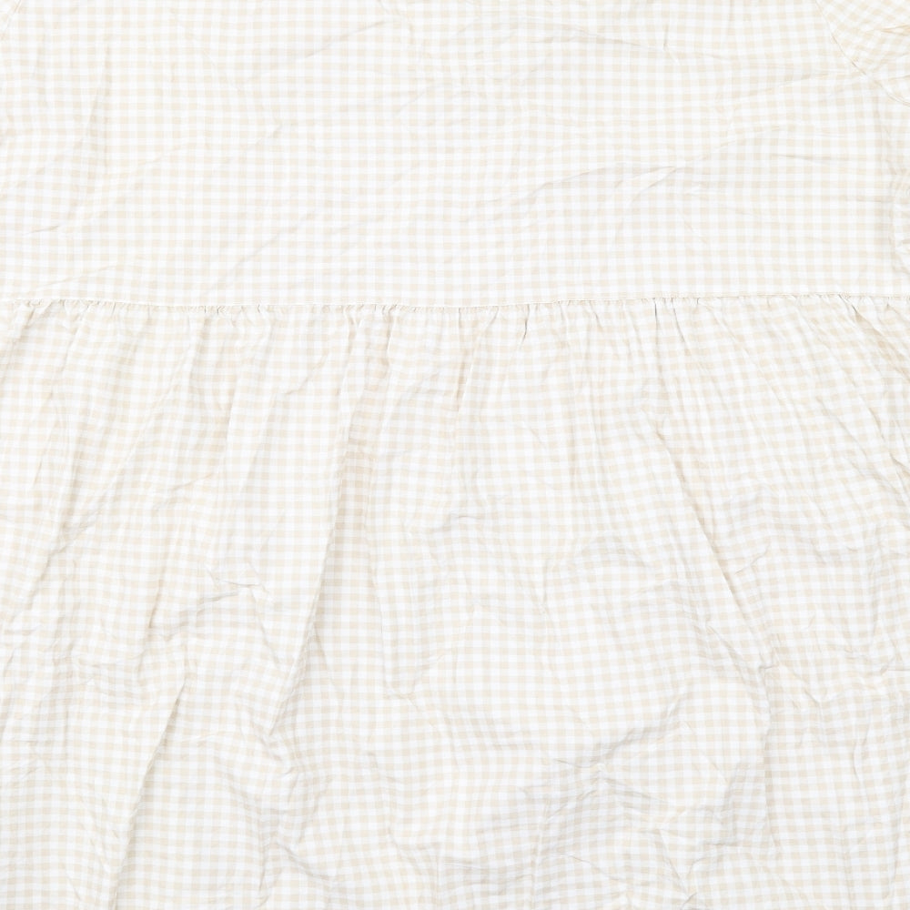 Womens Beige Gingham Cotton Trapeze & Swing Size 2XL Round Neck Pullover