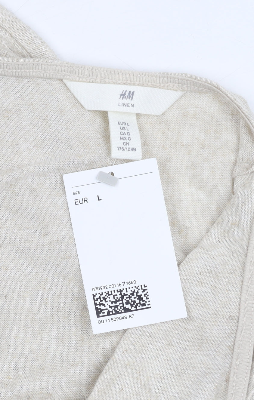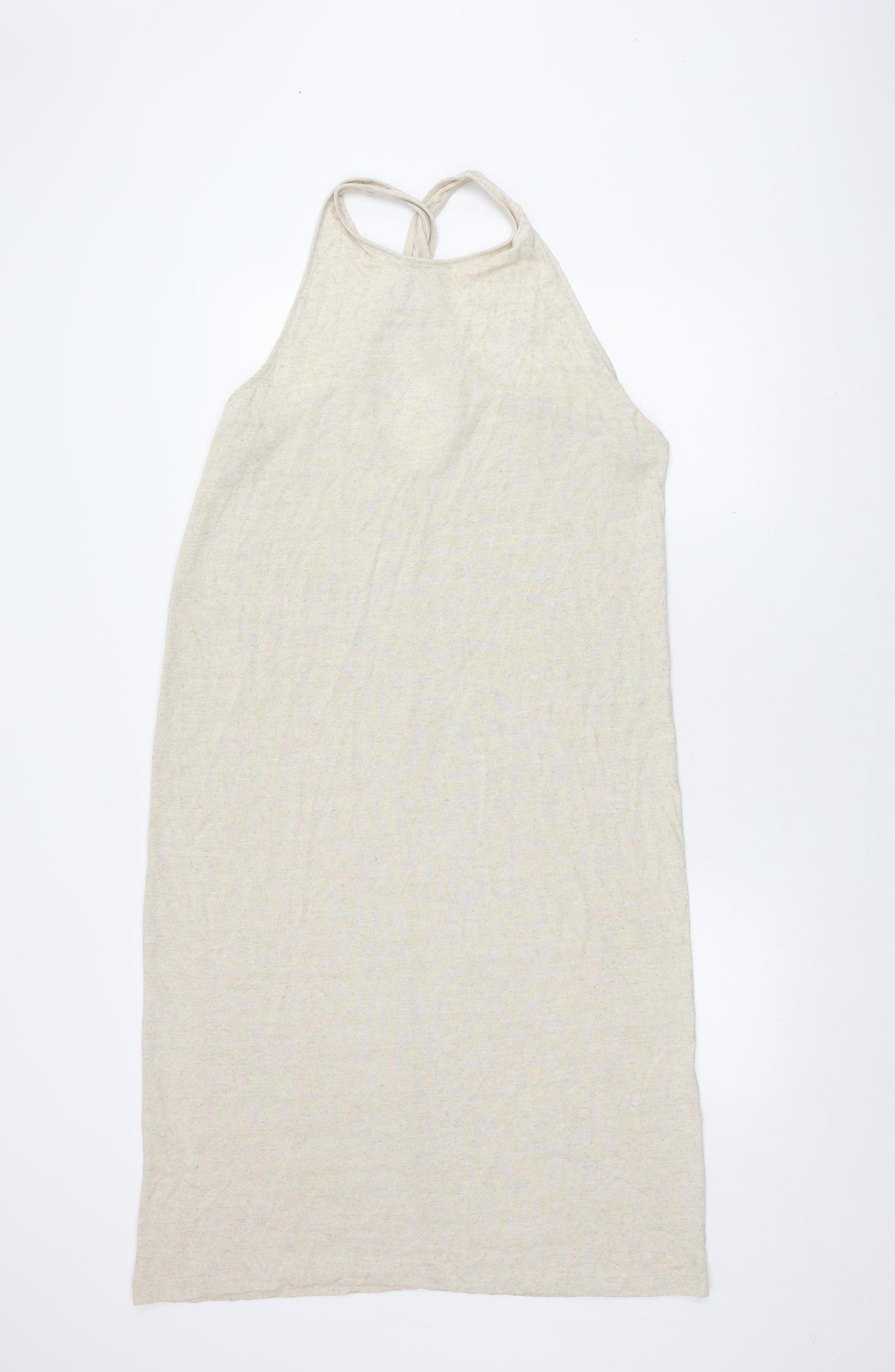 Embrace effortless style with this elegant H&M Women's Beige Slip Dress. Crafted in a soft and breathable blend of 50% Viscose and 37% Linen, this dress offers a perfect combination of comfort and sophistication. Its sleeveless design and strappy halter neckline provide an airy feel, making it an ideal choice for warmer days. The neutral beige colour adds versatility, easily pairing with a variety of accessories, while its minimalist and bohemian theme ensures it remains timeless. Perfect for casual outings or leisurely summer brunches, you'll love the freedom and femininity this dress provides. Its regular fit complements most body types, while the woven fabric adds subtle texture to your look. Machine washable for easy care, this dress promises to be a summer staple in your wardrobe. Elevate your style effortlessly and enjoy all-day comfort with this beautifully crafted piece from H&M. Don't miss out on incorporating this essential summer dress into your collection today!