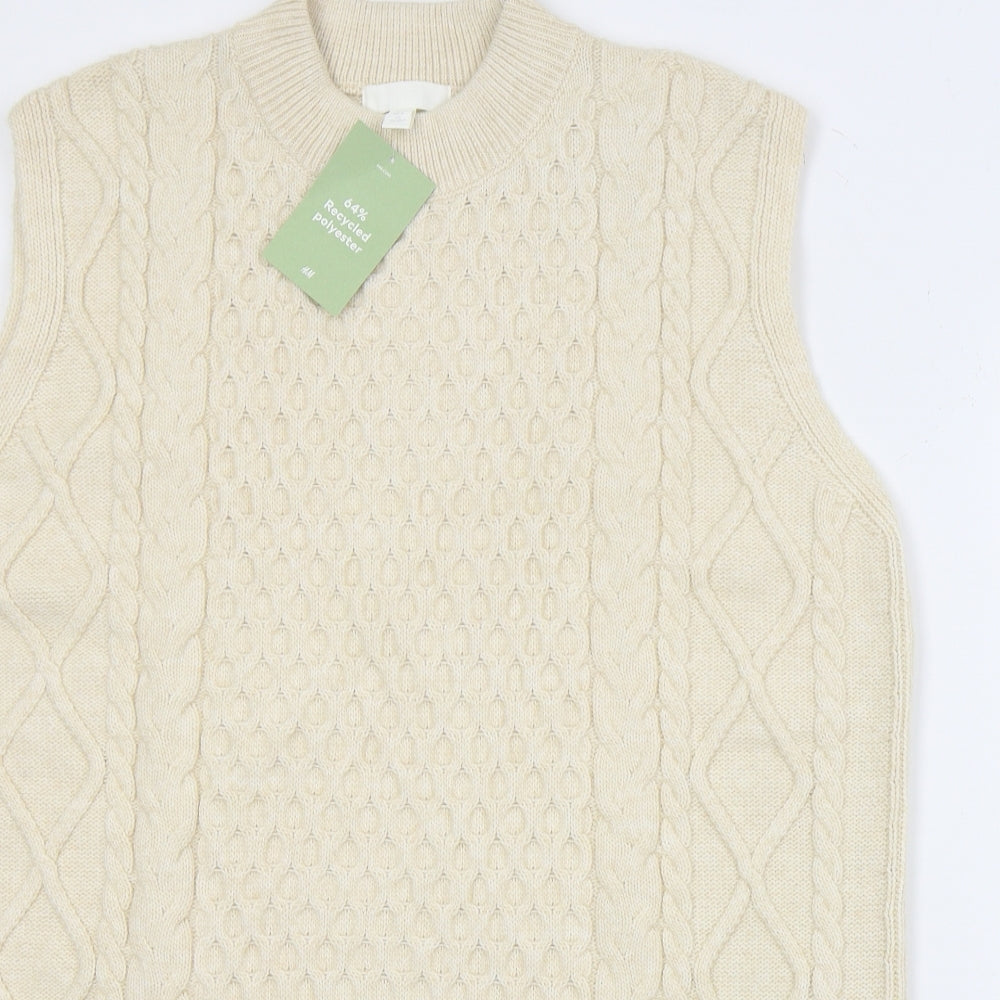 Womens Beige Mock Neck Polyester Vest Jumper Size L