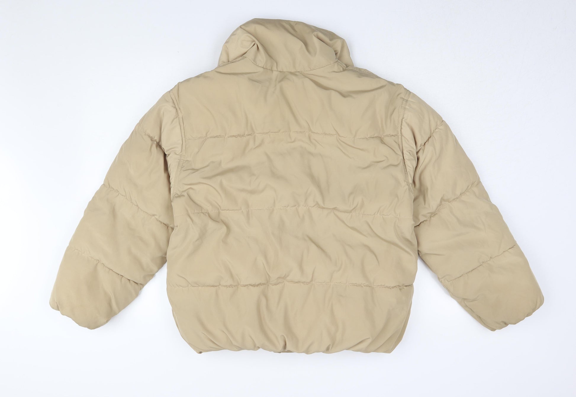 Women's Beige Puffer Jacket Size 2XS, Casual, Buttoned