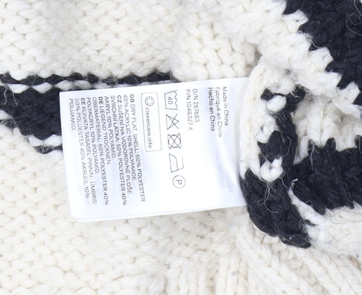 Revamp your wardrobe with this chic H&M women's pullover jumper, perfect for casual outings or relaxed days at home. Crafted in a medium size, this beige beauty features timeless black stripes, effortlessly blending trendy style with classic charm. The crew neckline and long balloon sleeves add a touch of elegance, making it a versatile piece suitable for multiple occasions. Made from a soft, comfortable knit fabric consisting of 90% polyester and 10% acrylic, it promises both warmth and durability. The jumper's regular fit offers comfort and flexibility for layering or solo wear, ideal for any casual occasion. This machine washable piece ensures minimal maintenance, making it a practical addition to your everyday attire. Despite being in excellent condition, this jumper shows no signs of previous wear or damage, promising long-lasting wear. Elevate your casual ensemble with this stylish yet functional jumper, and make it a staple in your collection today.