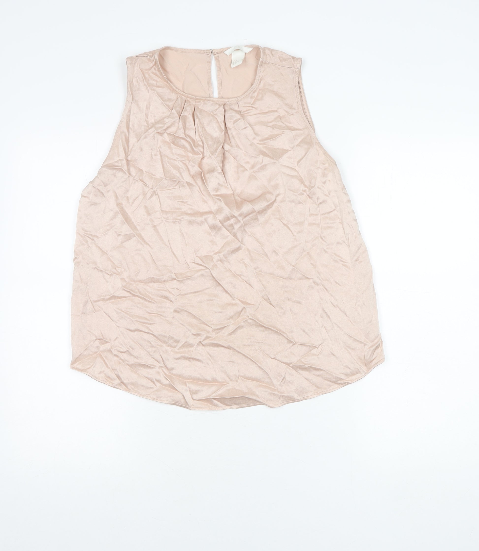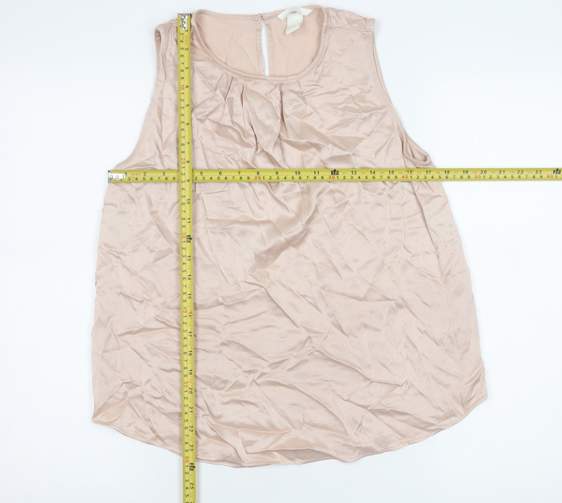Elevate your everyday wardrobe with this chic and versatile H&M women's blouse in a flattering beige hue. Crafted from 100% viscose, this sleeveless top offers a lightweight and breathable feel, making it the ideal choice for warm summer days or for layering under jackets and cardigans during transitional seasons. The soft viscose fabric drapes beautifully, giving you both comfort and style in one effortless piece.This blouse features a classic scoop neckline and subtle pleating at the front for added elegance. Designed with a regular fit, it ensures ease of movement and a flattering silhouette that suits different body types. The solid beige colour makes it incredibly versatile, allowing you to pair it effortlessly with trousers, skirts, jeans or shorts. Whether you're heading out for a casual weekend outing, spending the day at the office, or enjoying a relaxed evening with friends, this blouse will adapt to your needs.The design is finished with a simple back button fastening, making it easy to wear while maintaining a neat appearance. The wide straps provide comfortable coverage, and the sleeveless cut ensures you stay cool and stylish on warmer days. Perfect for casual occasions, this blouse offers understated elegance that can be elevated with the right accessories.In very good pre-loved condition with only some wrinkles from storage, this H&M blouse is ready for many more wears. It is machine washable for fuss-free care, making it a practical choice for everyday wear.Add this wardrobe essential to your collection today and enjoy the combination of comfort, style, and versatility that H&M is known for. Easy to mix and match, this blouse will soon become one of your go-to pieces for creating effortlessly chic looks.