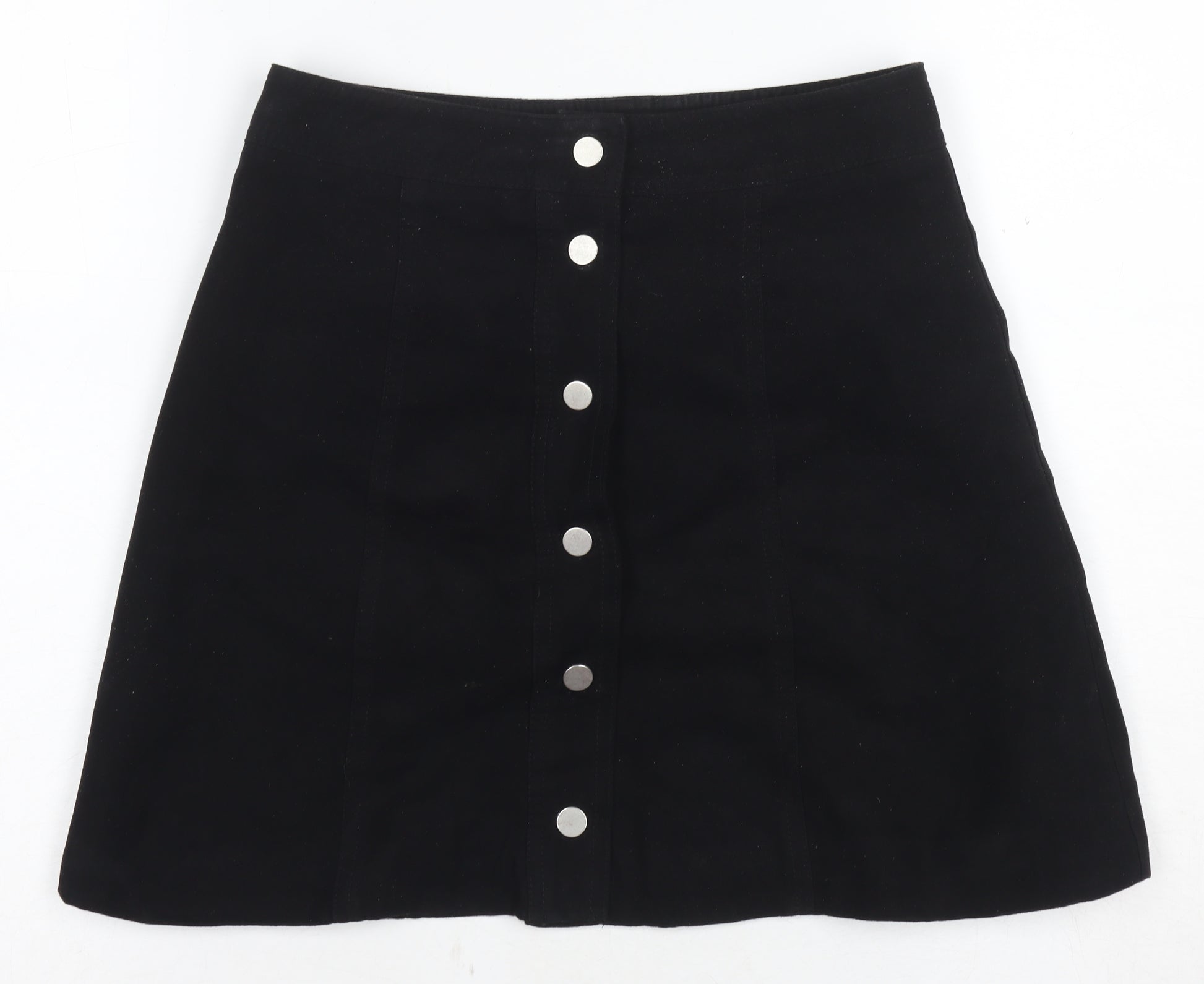 Women's Black A-Line Button Skirt, Size 6, Polyester