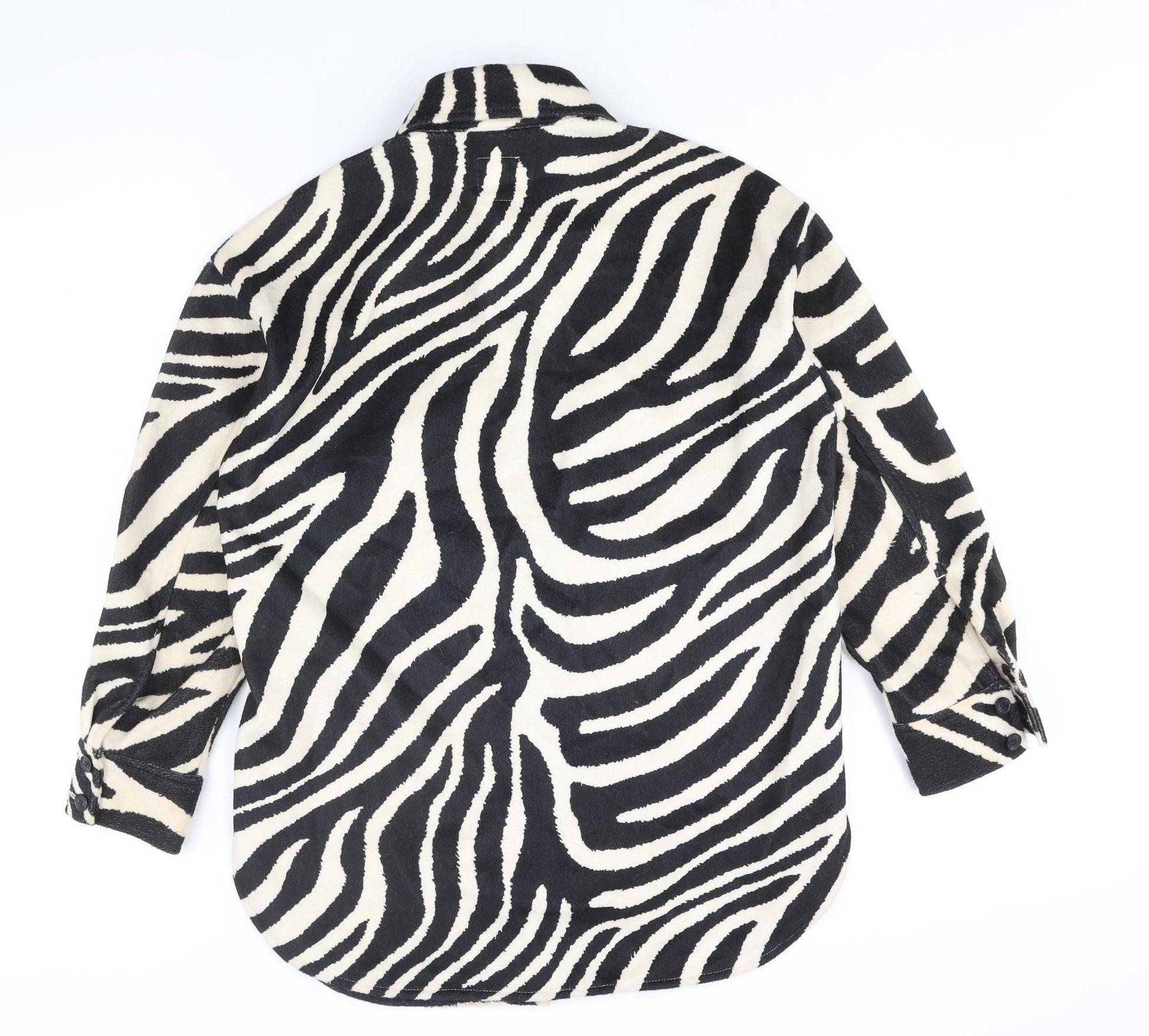 Womens Black Animal Print Jacket Size XS Button - Zebra Print