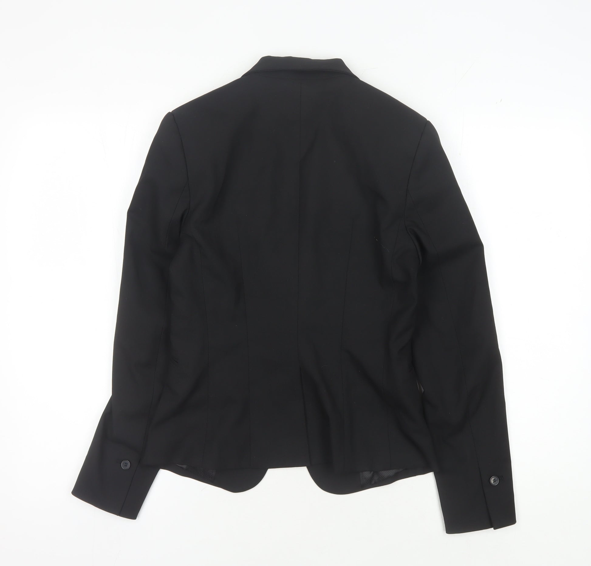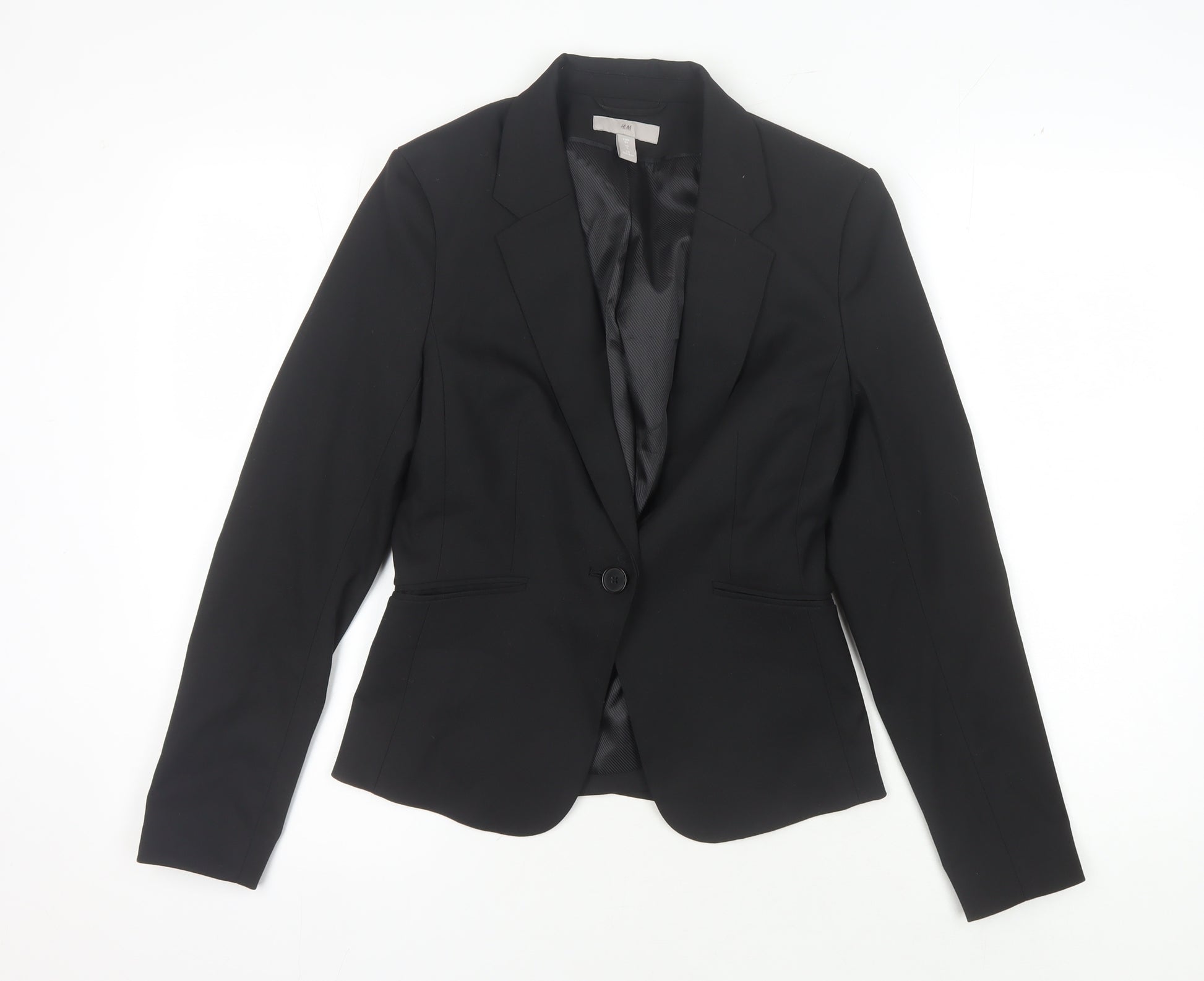 H&M Women Black Single-Breasted Blazer Jacket UK 8 Cotton Blend