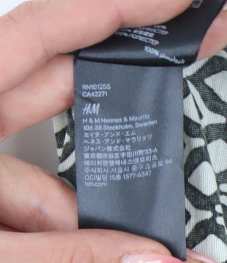 Elevate your wardrobe with this stylish H&M camisole tank top, perfect for adding a touch of sophistication to your casual ensemble. Made from 100% viscose, this top offers a lightweight and breathable fit, ensuring comfort throughout the day. The scoop neckline and spaghetti straps contribute to its relaxed yet chic silhouette, making it an ideal choice for warm summer days and casual outings. The black geometric pattern adds a contemporary edge, while the woven fabric enhances durability and longevity. Pair it with jeans or shorts for a laid-back look, or dress it up with a skirt and accessories for a more refined appearance. Whether you're spending a day out with friends or enjoying a casual weekend at home, this piece promises versatility and effortless style. Its regular fit and summer-ready design make it a must-have staple in your collection. This gently used tank is in excellent condition, carefully inspected to meet quality standards, and is machine washable for easy care, offering you great value and longevity.