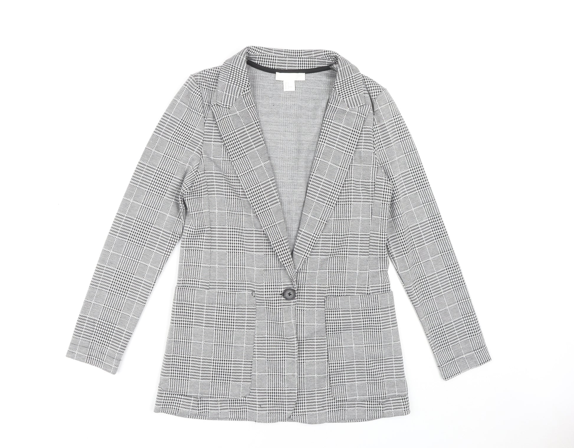 Elevate your wardrobe with this chic H&M Women's Black Check Blazer, perfect for both business and casual occasions. Crafted from a comfortable blend of polyester, viscose, and elastane, this blazer offers a regular fit that flatters your silhouette. The classic check pattern adds a timeless touch, while the mid-length cut ensures versatility for layering over various outfits. This single-breasted blazer features a stylish button accent, making it suitable for both formal and relaxed settings. Ideal for the autumn and spring seasons, it's machine washable for hassle-free maintenance. With its elegant design and comfortable fit, this blazer is a must-have addition to your wardrobe, offering a sophisticated style that fits seamlessly into daily life.