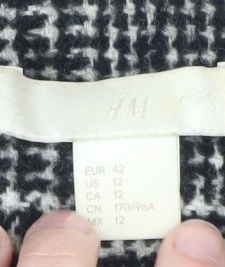 Elevate your outerwear collection with this sophisticated H&M women’s mid-length coat, expertly crafted in a stylish black checked pattern. Designed for both comfort and elegance, the coat is perfect for everyday wear or smart occasions during the colder months. The rich texture of the woven fabric showcases a timeless check design, combining modern flair with a classic silhouette. The mid-length cut adds a versatile touch, ideal for layering over office outfits, casual weekend looks or evening wear. Made from a high-quality blend of 61% polyester and 39% wool, this coat promises warmth without compromising on breathability or comfort. The soft, smooth polyester lining ensures an easy slip-on wear while keeping you insulated for the chillier Autumn and Winter seasons. Its open front styling, complemented with two practical pockets, delivers effortless sophistication. This smart, tailored piece retains structure while allowing relaxed movement, making it an everyday luxury essential. The monochrome check pattern brings a clean, minimalist elegance that pairs beautifully with any wardrobe palette. Designed for women who appreciate timeless outerwear, the coat provides both warmth and refined edge, easily transitioning from professional settings to casual outings. The high-quality wool blend fabric ensures durability and a polished finish that retains its shape after wear. Perfect for layering over knitwear, shirts, or dresses, this H&M coat defines modern chic with a comfortable regular fit. Lightly worn and excellently maintained, it remains in great condition with no visible flaws. Whether commuting, travelling, or meeting friends, this coat delivers a stylish, cosy layer to your outfit. A must-have wardrobe staple, this checked black wool blend coat from H&M combines practicality, polish, and classic sophistication effortlessly.