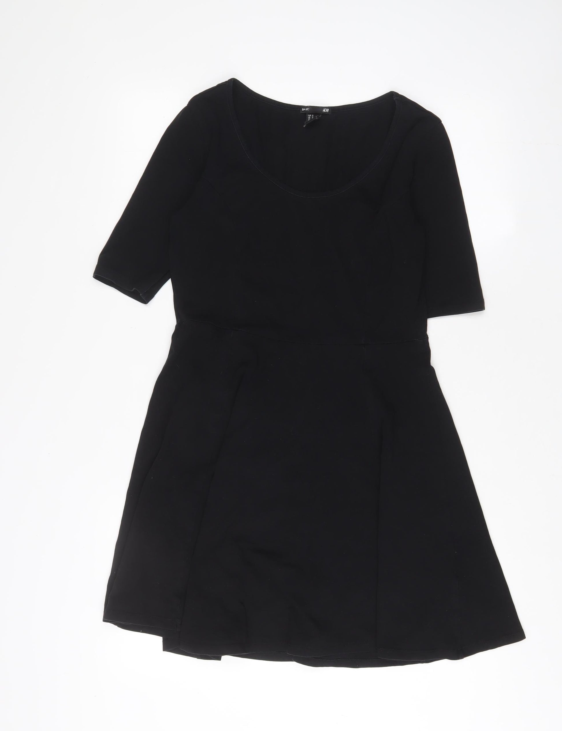 H&M Womens Black Colourblock Viscose Jumper Dress Size M Square Neck Button