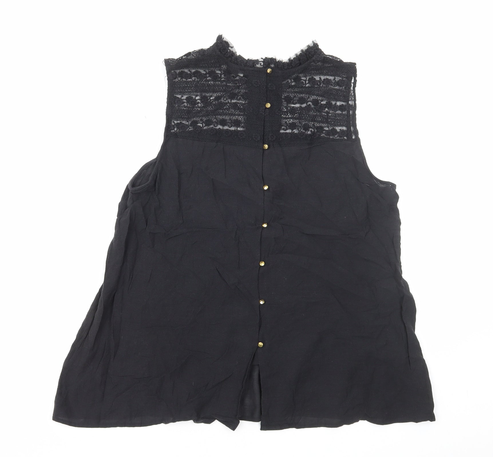 Womens Black Cotton Basic Blouse Size 14 Mock Neck - Lace Detail