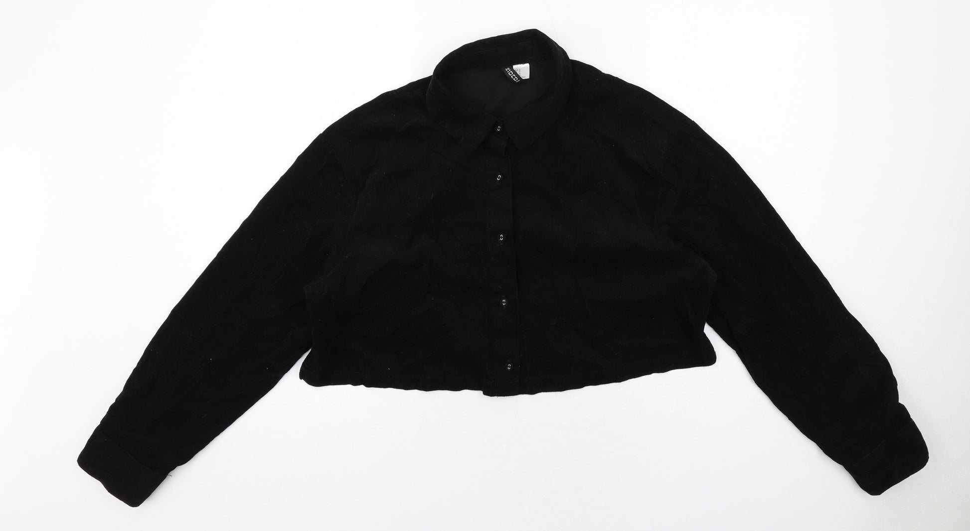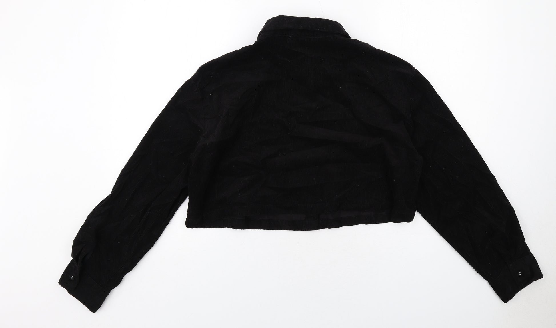 Womens Black Cotton Cropped Button-Up Size M Collared