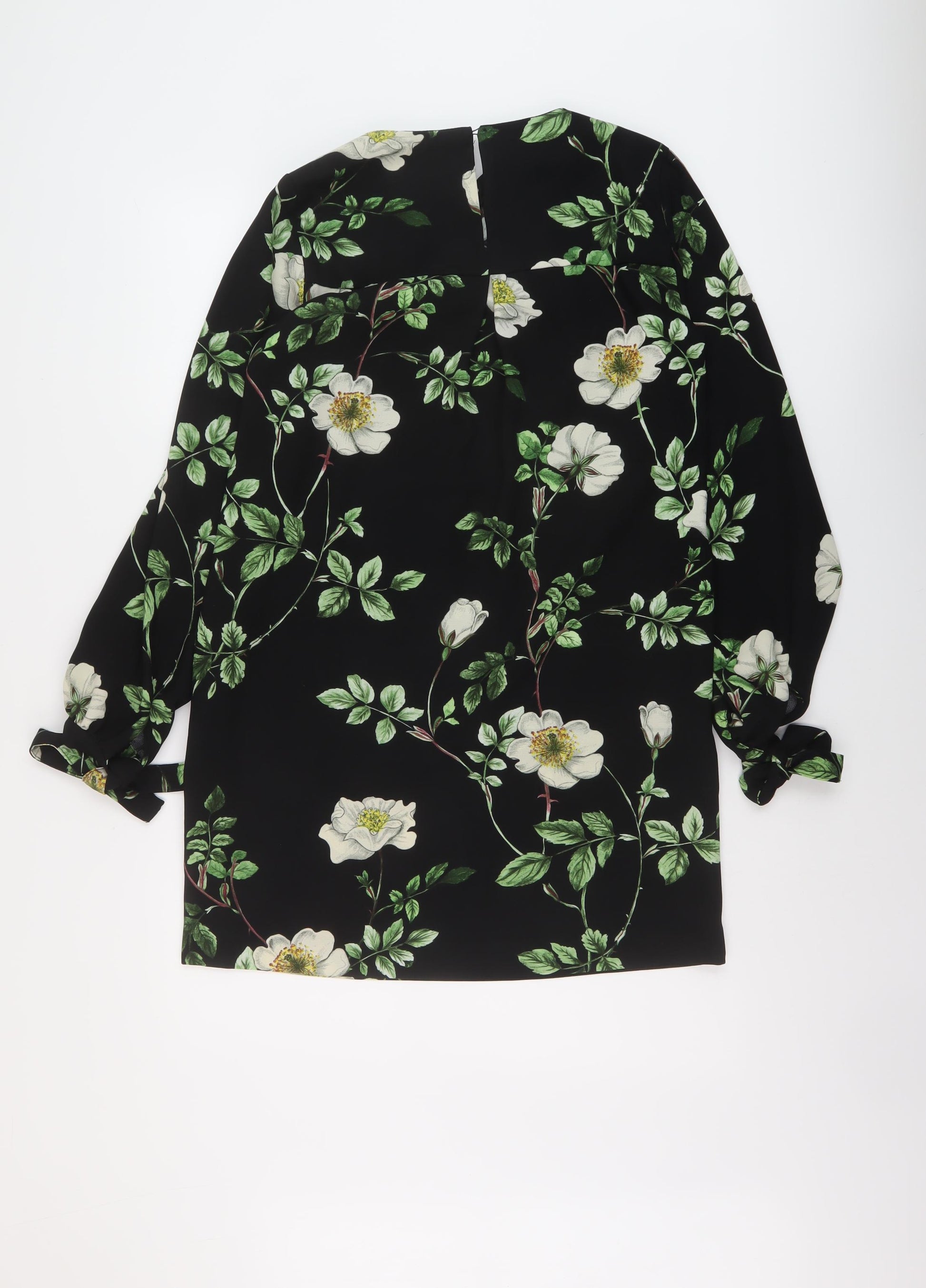 Womens Black Floral Polyester A-Line Size 6 Round Neck Button