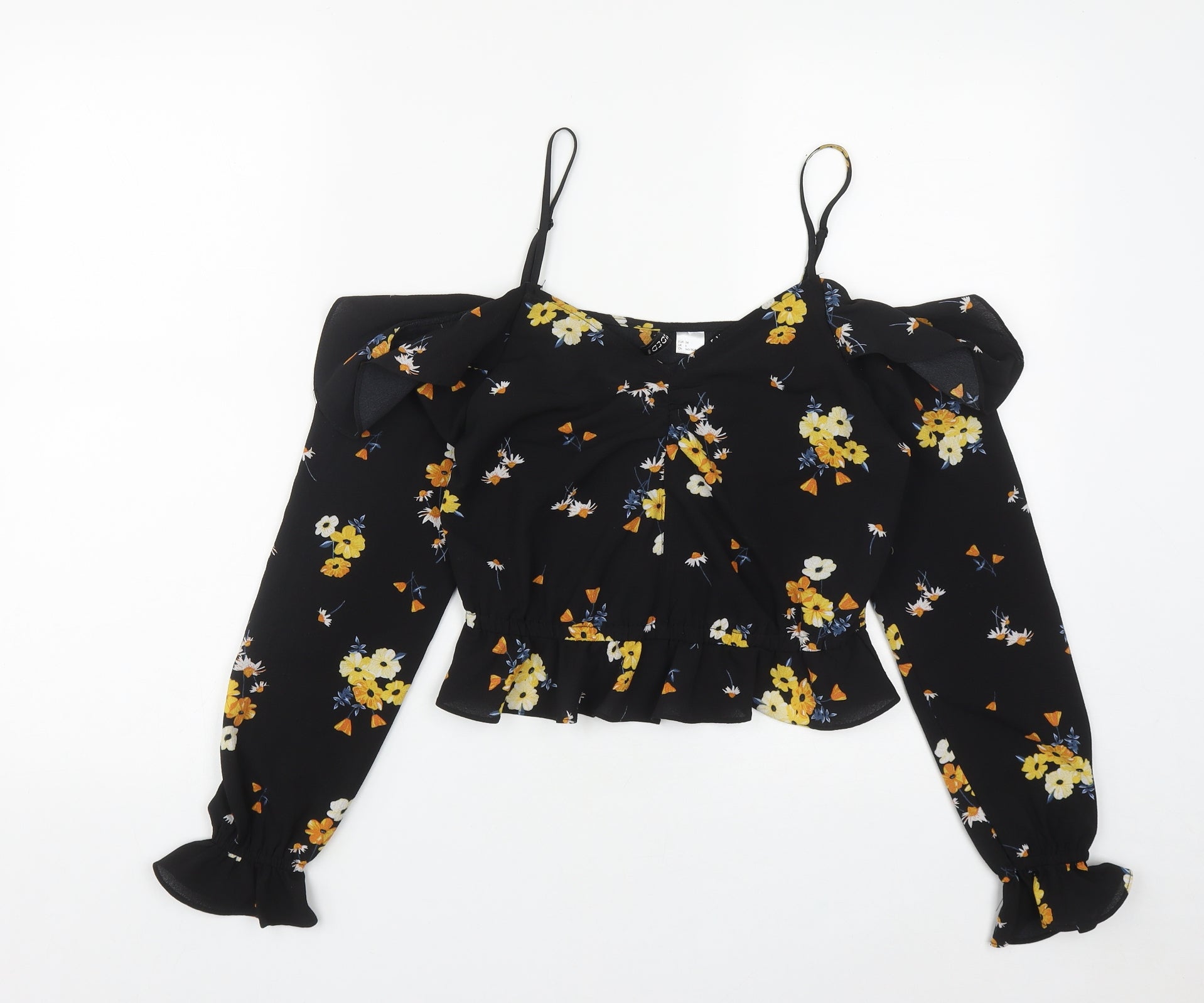 Womens Black Floral Polyester Basic Blouse Size 6