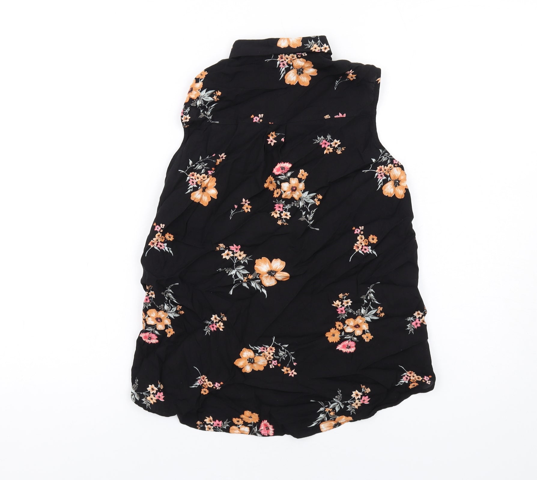 Womens Black Floral Viscose Basic Button-Up Size 4 Collared