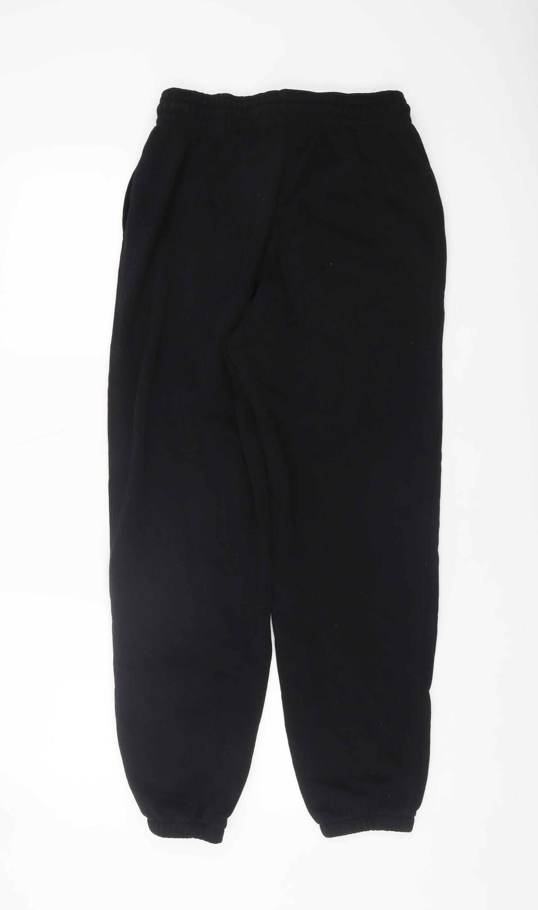 These H&M Women's Black Jogger Sweatpants are the perfect addition to your casual wardrobe. Made from a comfortable cotton and polyester blend, they offer softness and durability for everyday wear. The classic jogger style features an elastic waist with a drawstring closure, ensuring a secure and adjustable fit. Ideal for both spring and autumn, these sweatpants are versatile enough to be worn on a variety of casual occasions, whether you're lounging at home or heading out for a quick errand. The sleek black colour makes them easy to pair with any top, and the regular fit provides a flattering silhouette. Enjoy the practicality and style of these joggers, crafted with care to withstand regular machine washes. Although in excellent used condition, please note they show minimal signs of wear consistent with being gently used. Elevate your comfort with these essential H&M joggers and embrace the effortless style they bring to your everyday look.