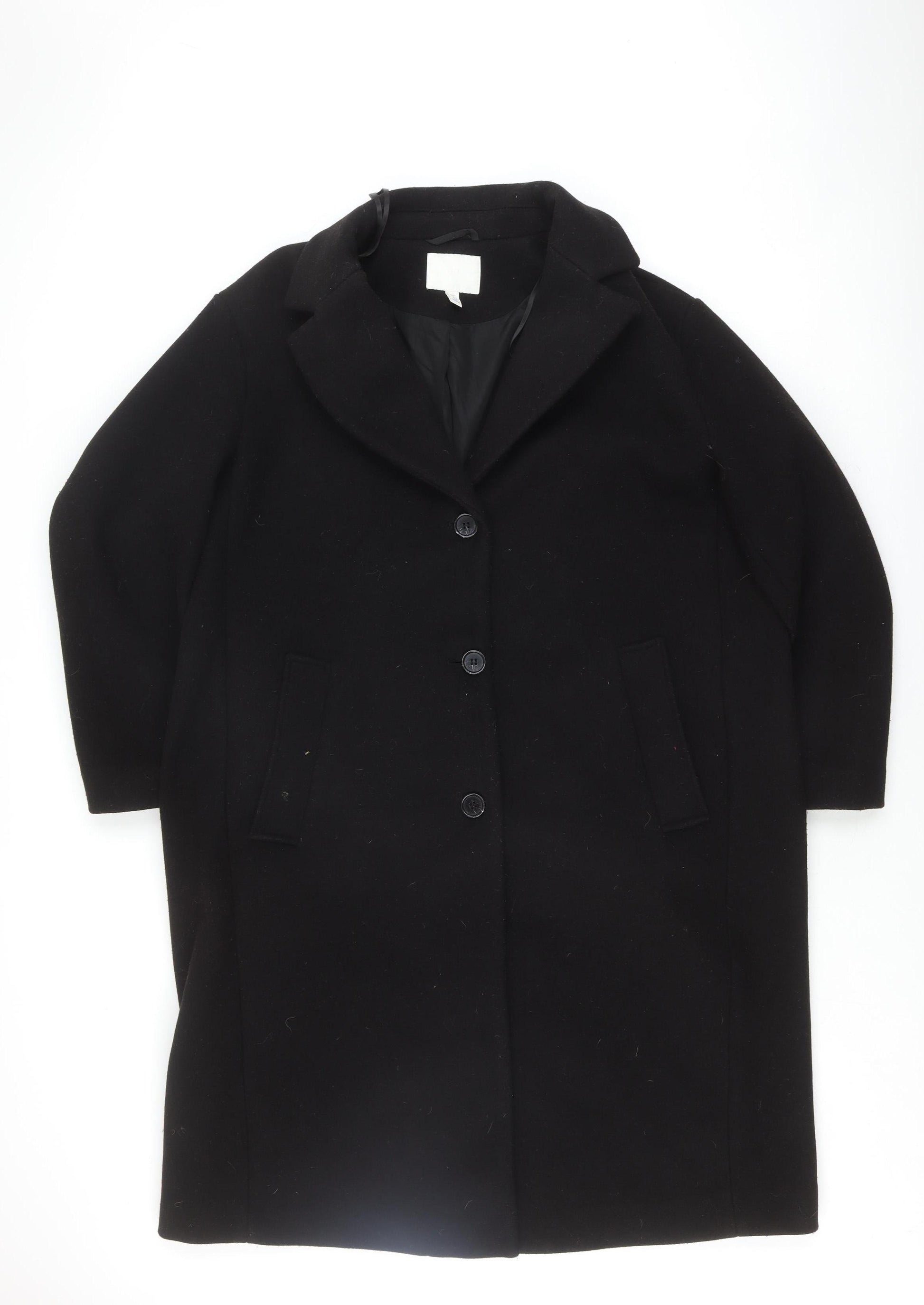Discover timeless elegance with this H&M Women’s Black Mid-Length Overcoat, a staple piece designed to elevate your outerwear collection. Crafted with 100% polyester, this coat effortlessly combines durability and style for everyday wear. Featuring a classic black hue, it offers versatility to match with various ensembles, making it perfect for both casual outings and professional settings. Designed for the autumn and winter seasons, its lined feature ensures warmth and comfort during chilly days. The single-breasted button closure adds a sophisticated touch while keeping the chill out, and its relaxed fit caters to all-day comfort without compromising on style. Ideal for regular-sized women, this overcoat features long sleeves and a pattern-free finish for a sleek, polished look. Whether you’re heading to the office or enjoying a casual stroll, this overcoat is sure to be your go-to choice. Easy to care for with machine washability, this H&M coat offers practicality alongside style. Slight lint and dust are visible, which is easily manageable with regular care, maintaining its excellent condition. A must-have for the modern woman, this black overcoat promises to keep you warm and on-trend throughout the cold months.