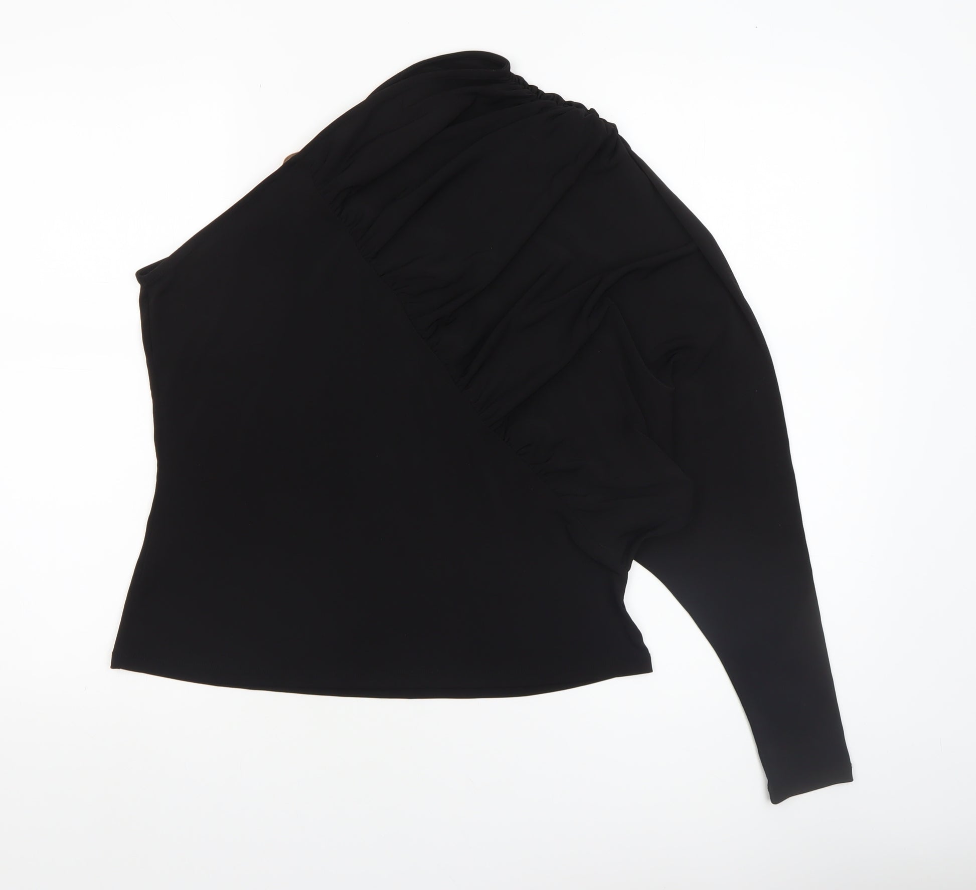 Women's Black One Shoulder Ruffle Stretch Blouse Size 14