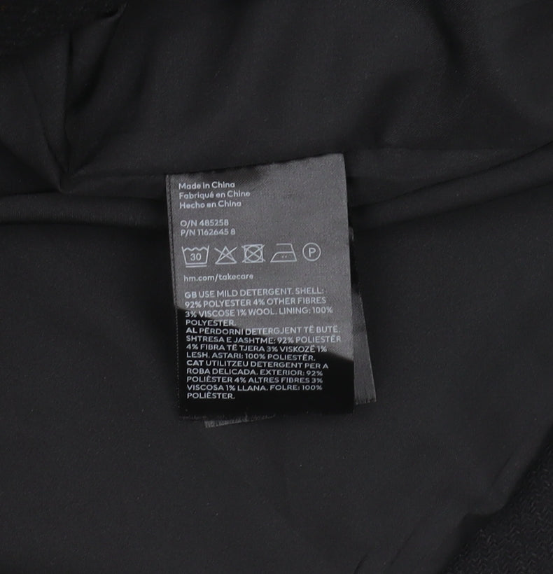 Step into sophistication with this elegant black pea coat from H&M, designed for the modern woman who appreciates both form and function. Crafted with a rich blend of polyester, viscose, and wool, this coat ensures warmth and comfort, making it ideal for those chilly autumn and winter days. The mid-length silhouette and single-breasted button closure offer a timeless appeal, perfect for both casual outings and professional settings. With its lined interior, the coat provides additional insulation while maintaining a sleek outline. The minimalist design is accentuated by classic buttons, creating a versatile look that pairs beautifully with a variety of outfits. Durable and machine washable, this coat is the perfect choice for effortless style and practicality.