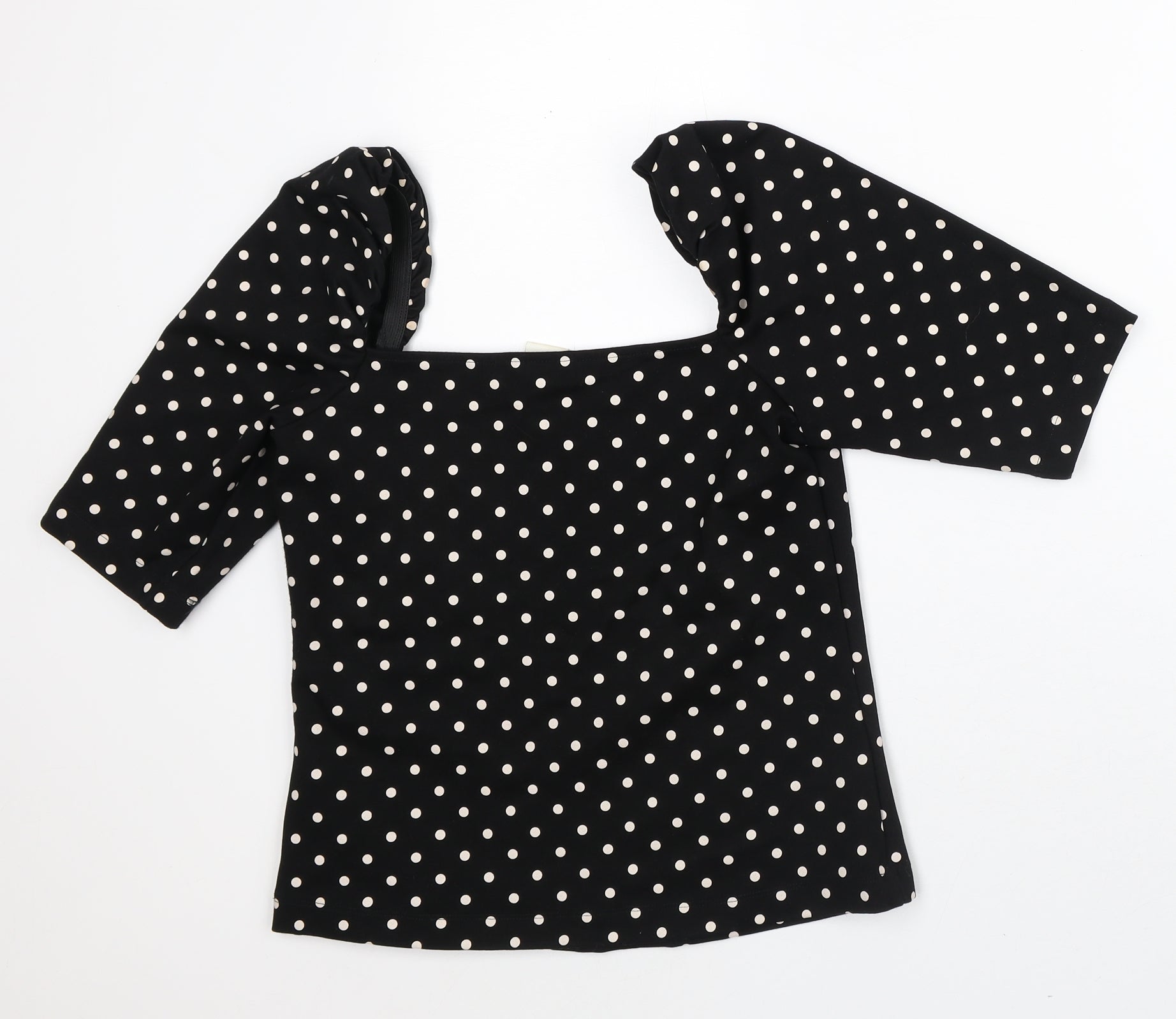 Womens Black Polka Dot Viscose Basic Blouse Size S Square Neck