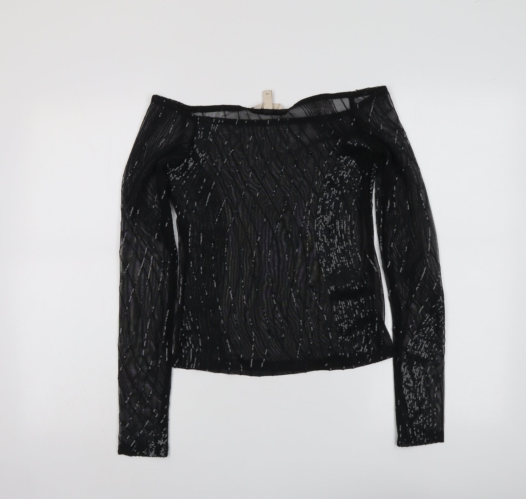 Womens Black Polyester Basic Blouse Size S Off the Shoulder