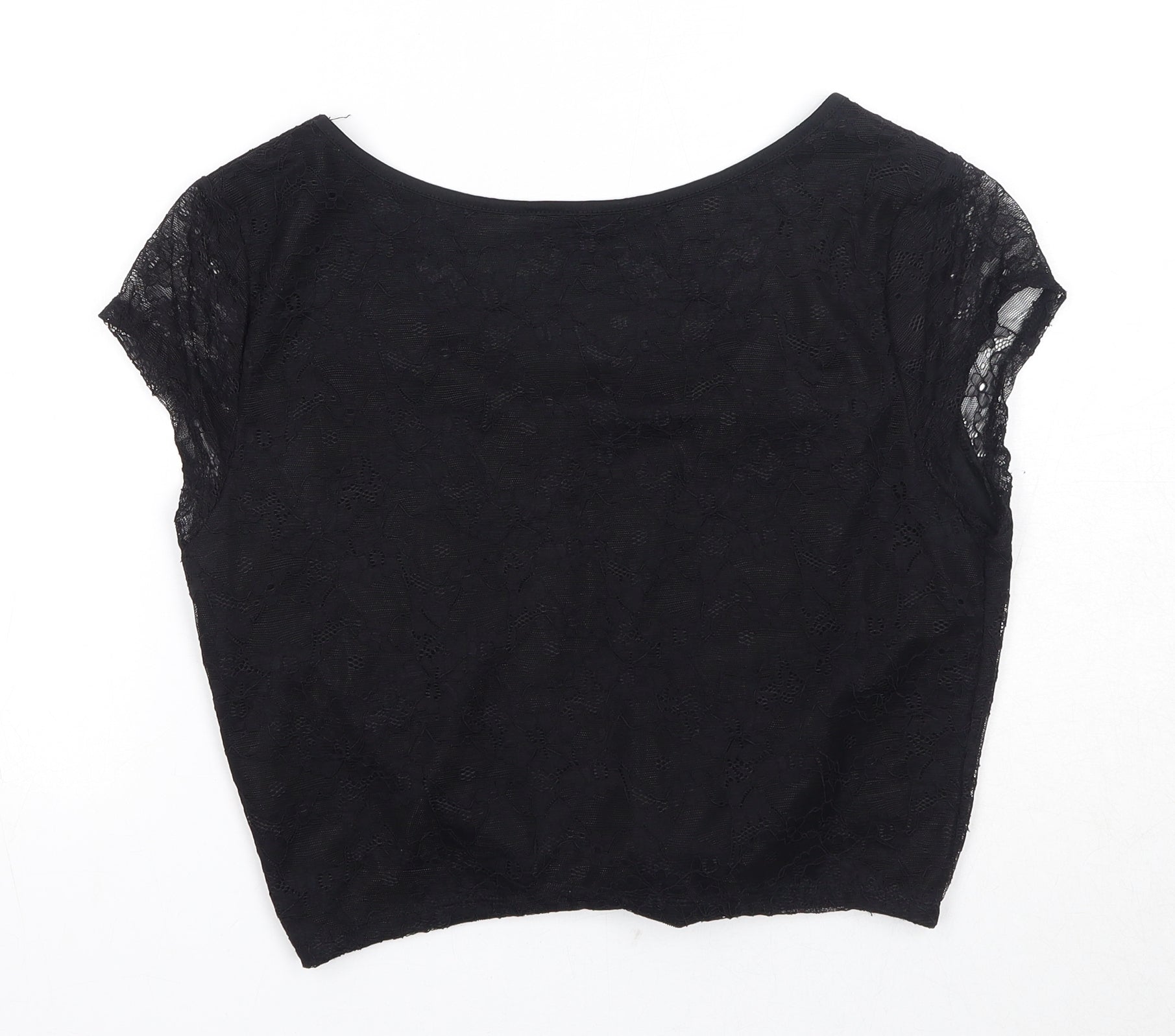 Womens Black Polyester Basic T-Shirt Size 14 Round Neck