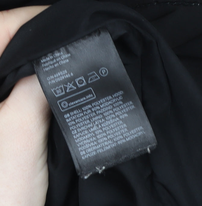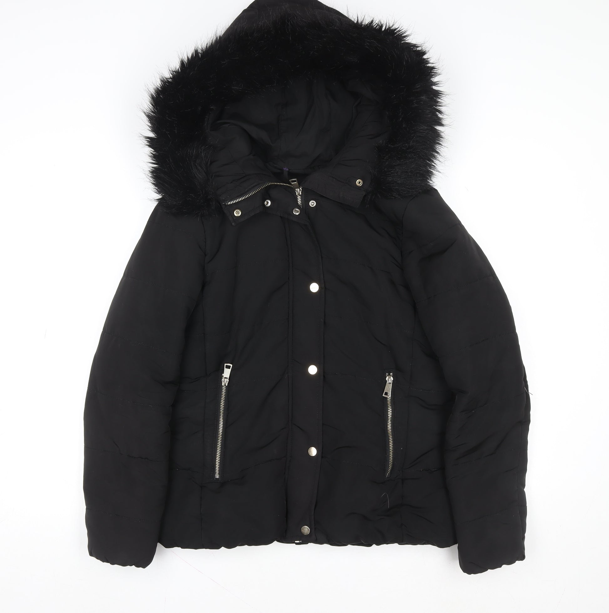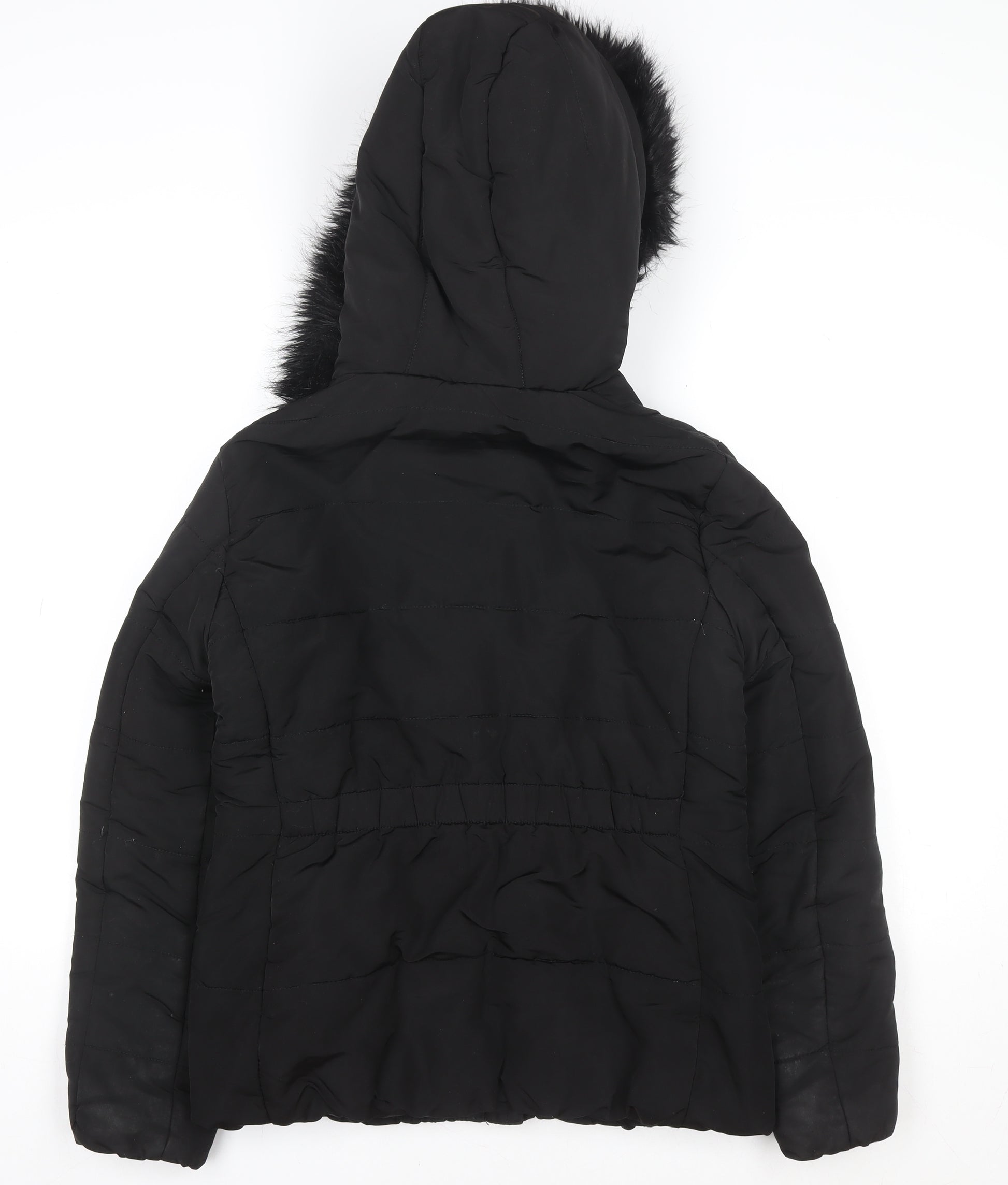 Womens Black Puffer Jacket Size 8 Faux Fur Hooded Winter Coat