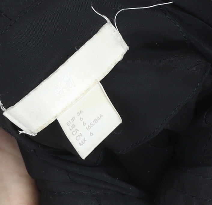 Stay cosy and stylish through the colder months with this chic black puffer jacket from H&M. Designed for women, this short-length winter jacket provides both warmth and versatility without compromising on style. The durable polyester outer shell ensures protection against the elements, while its soft polyester lining and insulation make it ideal for daily wear during autumn and winter seasons. Featuring a generously padded design, this coat offers exceptional comfort and warmth on chilly days. The detachable faux fur trim around the hood—made from a mix of modacrylic and polyester—adds a touch of luxury while offering extra protection against the cold. A mix of zip and press-stud button fastening keeps the wind out, while two convenient front zipped pockets provide both practicality and subtle style. The jacket’s classic black colour allows it to pair effortlessly with jeans, dresses, or office wear, making it a versatile choice for everyday use. With its regular fit and flattering silhouette, it’s comfortable for layering over jumpers or knitwear. This piece has been carefully inspected and remains in excellent pre-owned condition with no visible signs of major wear. Perfect for anyone looking for an affordable, high-quality outerwear option, this H&M puffer jacket brings together practicality, warmth, and modern fashion in one timeless design. Ideal for casual winter outings, walks, or city commutes, it’s a go-to wardrobe essential for the season ahead.