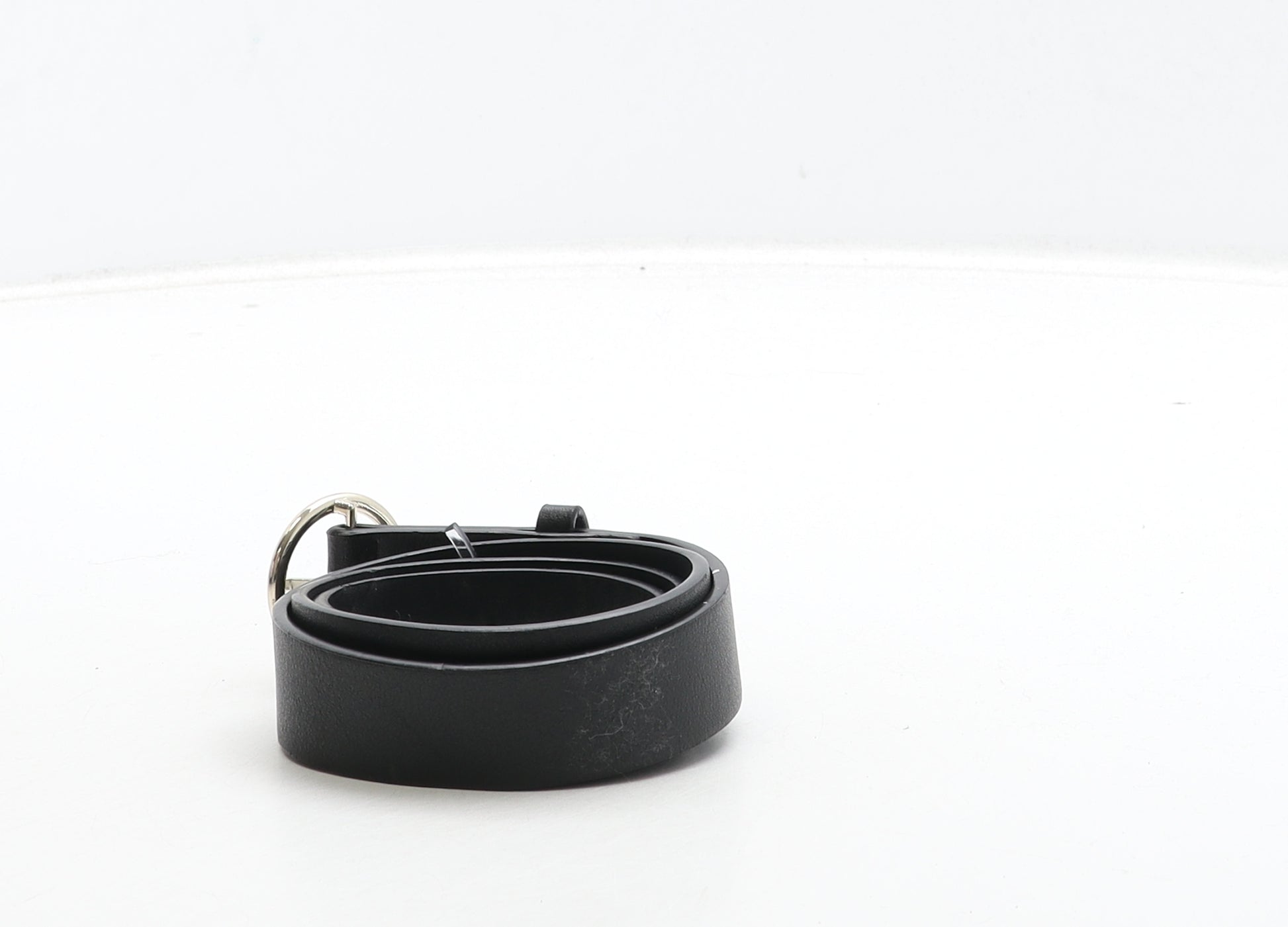Womens Black Solid Polyurethane Basic Belt Belt Size XL