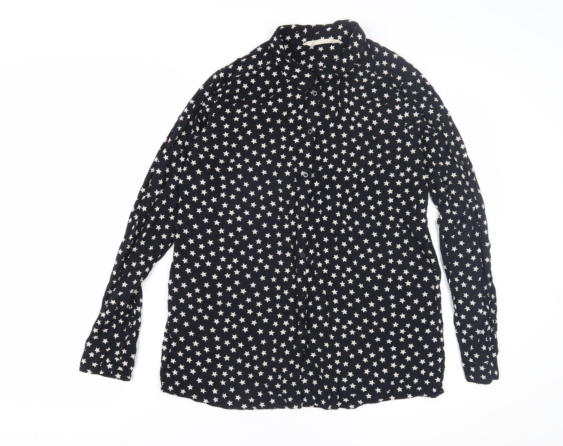 Elevate your casual wardrobe with this chic H&M Women’s Black Star Blouse. Tailored in size 12, it offers a regular fit that flatters a variety of body types. Crafted from 100% cotton, this blouse ensures comfort and breathability, making it an ideal choice for all seasons. Its long sleeves and collared neckline add a touch of sophistication, while the star pattern brings a playful yet stylish element. The blouse features a button-up closure for ease of wear, perfect for those spontaneous outings or relaxed days at home. Pair this versatile piece with your favourite jeans or a skirt for an effortlessly fashionable look. Don't miss out on adding this fashionable staple to your collection!