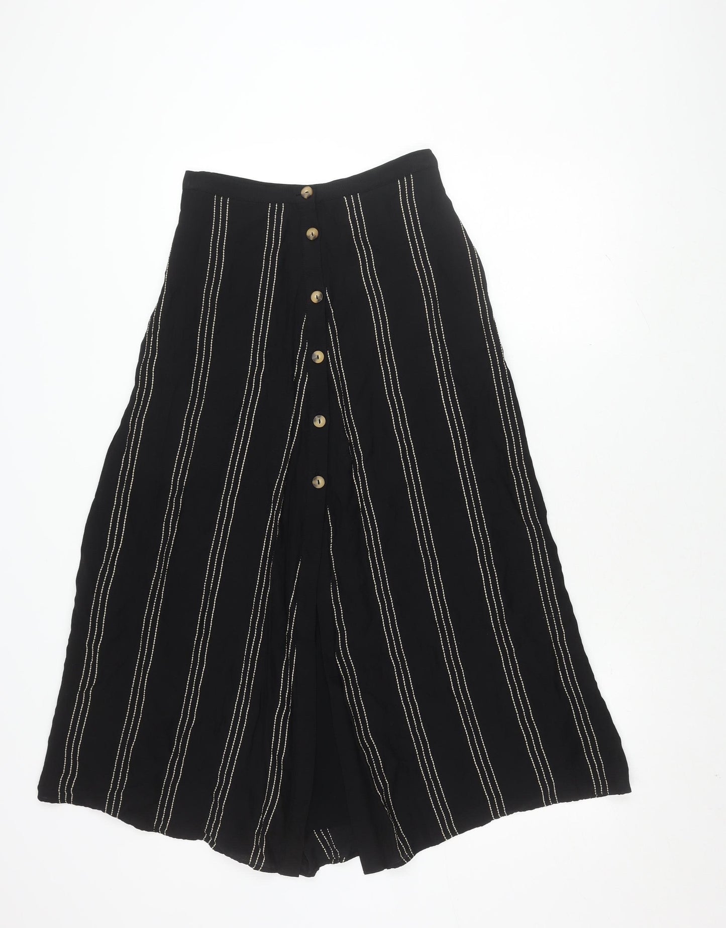 Elevate your wardrobe with this chic black striped skirt, perfect for any stylish woman. Crafted from 100% viscose, it offers a comfortable and lightweight option for your daily outfit. The elegant stripes add a touch of sophistication, while the button accents provide a unique look that stands out. Designed with the modern woman in mind, this skirt is machine washable and easy to care for, ensuring convenience as well as style. Whether you're heading to a casual lunch or a day out with friends, this skirt makes the ideal choice. Its regular fit flatters any body type, while the size 6 offers a perfect fit for those seeking a snug and fashionable look. Pair it with your favourite top or blouse to create a look that's uniquely yours. With a high-quality construction, this skirt promises durability and lasting wear. Despite its excellent used condition, it maintains a fresh, nearly new appearance, making it a great addition to any collection. Don't miss out on the opportunity to own this versatile and stylish piece that's priced just right for your budget.