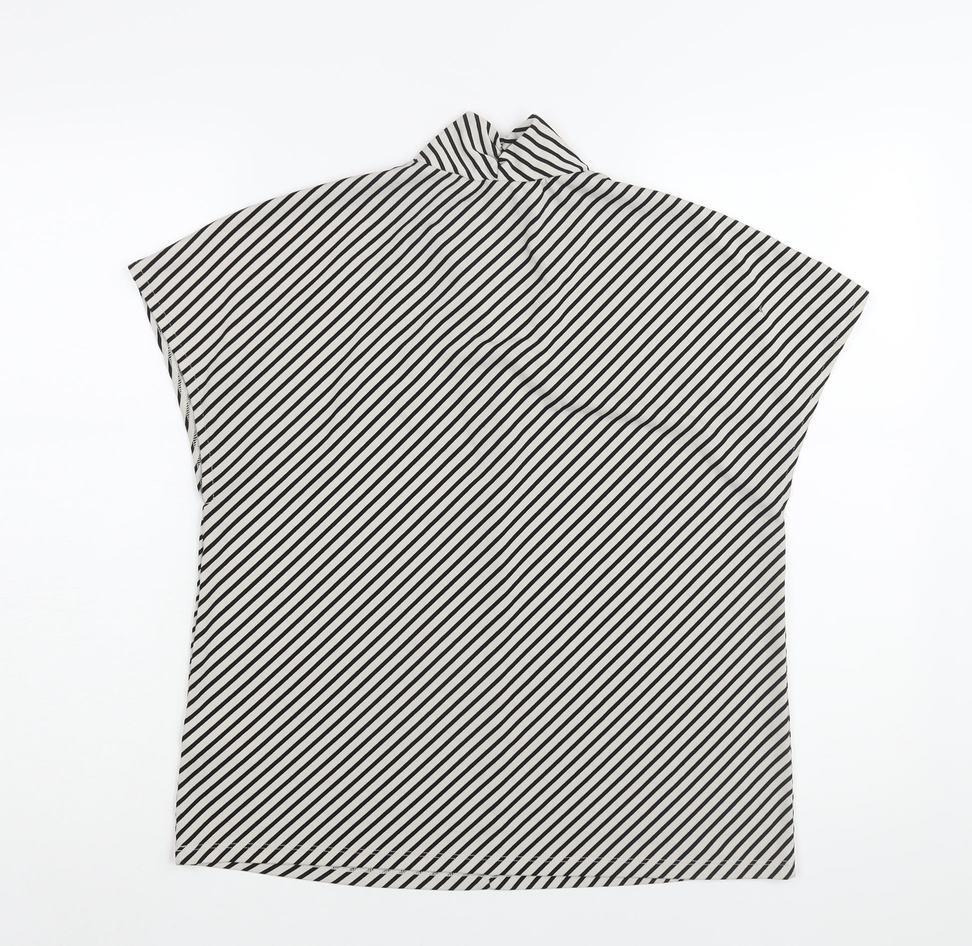 Womens Black Striped Polyester Basic Blouse Size M V-Neck