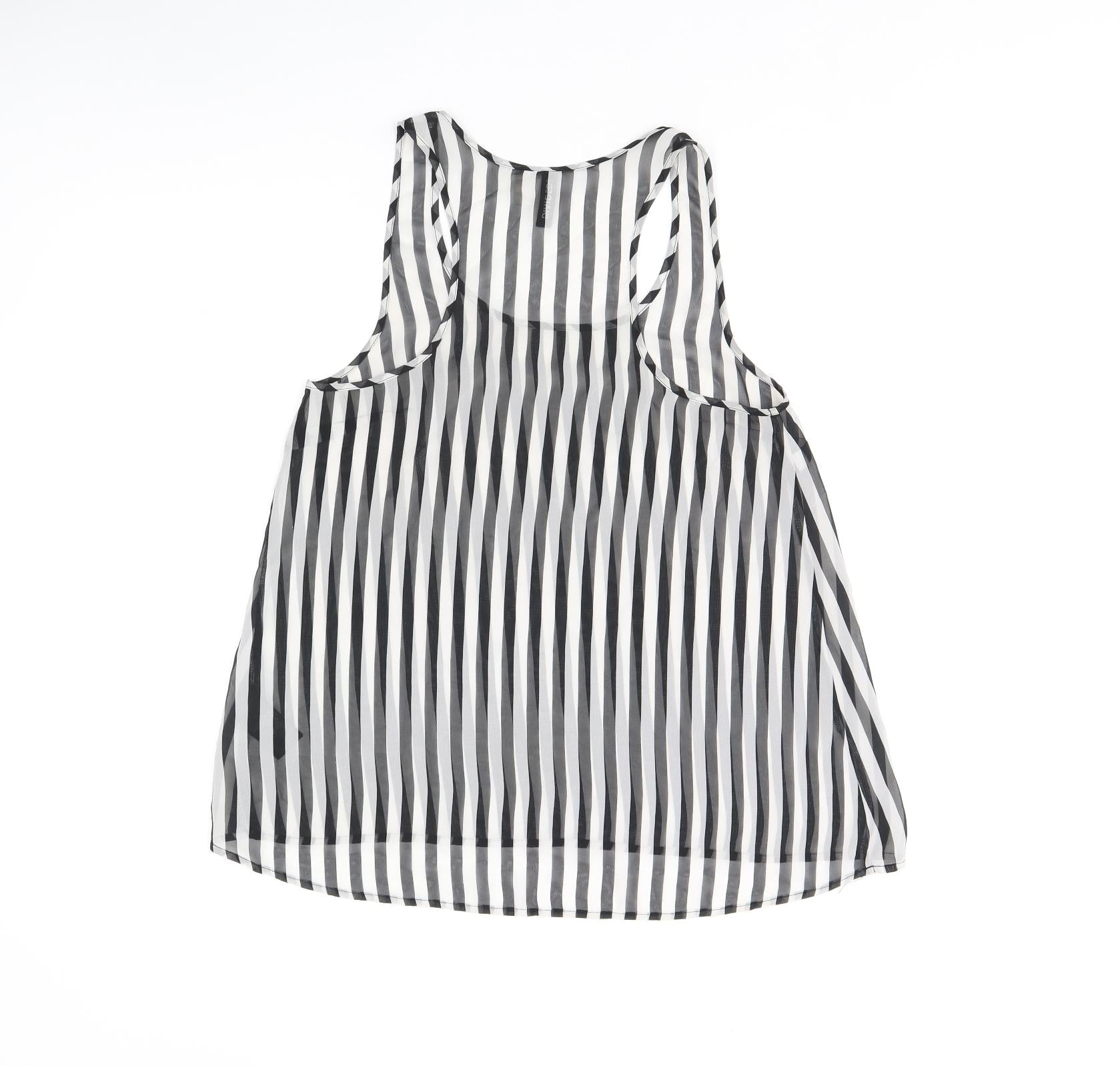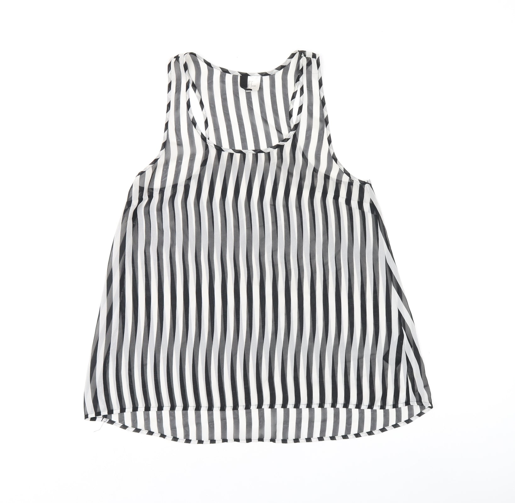 Womens Black Striped Polyester Basic Tank Size 8 Scoop Neck