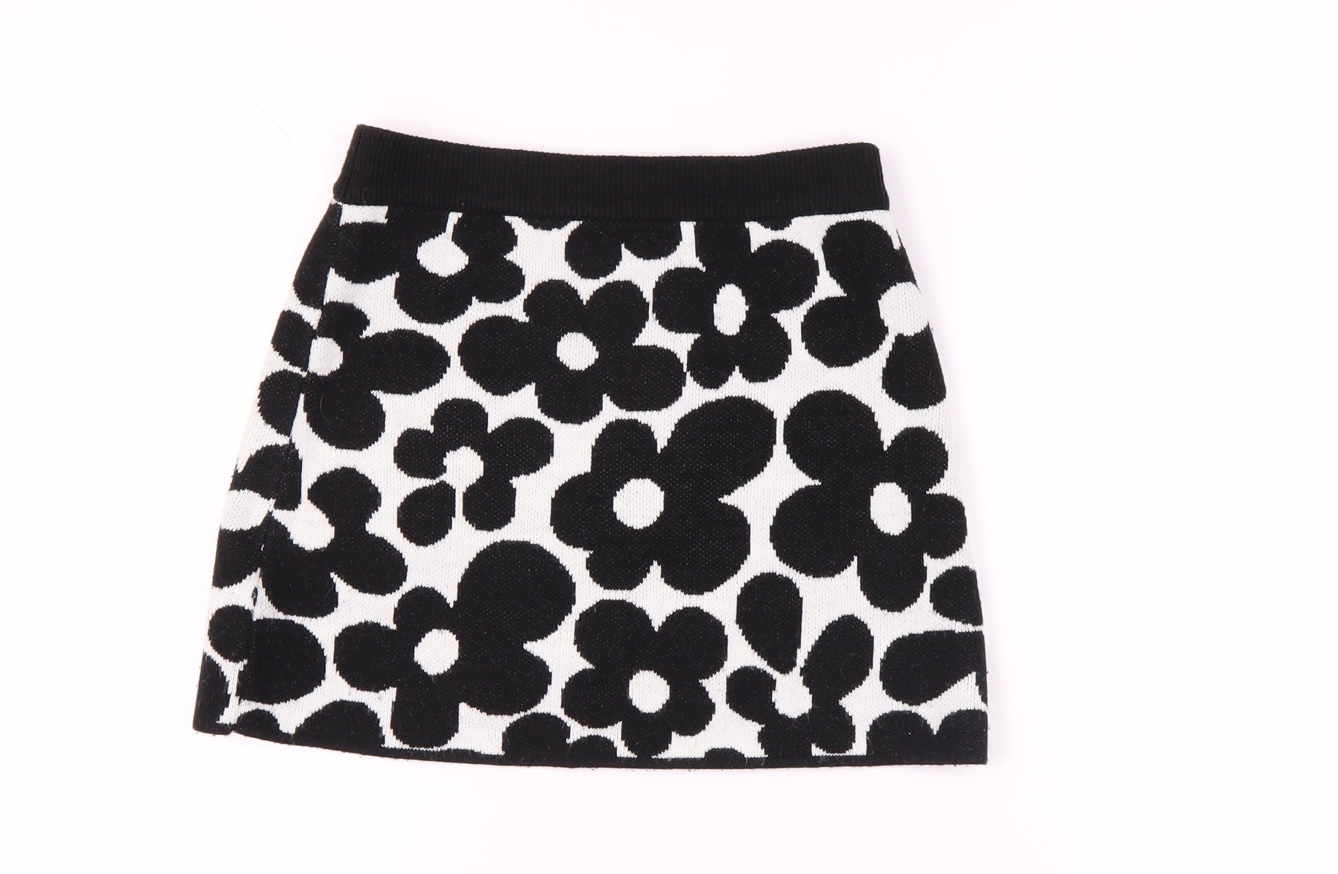 Step into the spotlight with this chic H&M Women's Mini Skirt. Boasting a striking black and white floral pattern, this A-line skirt is perfect for making a statement. The simplistic yet elegant design makes it a versatile addition to any wardrobe. Crafted entirely from lightweight acrylic, this knit skirt ensures comfort and easy maintenance, being machine washable. The floral theme and mini length make it an ideal option for warm weather, whether you're enjoying a casual outing or a summer event. The skirt is tailored for a regular fit, sized at XS, and is suitable for the modern woman who appreciates style and convenience. Embrace the relaxed charm and enjoy the compliments on your casual look with this new-with-tags piece.