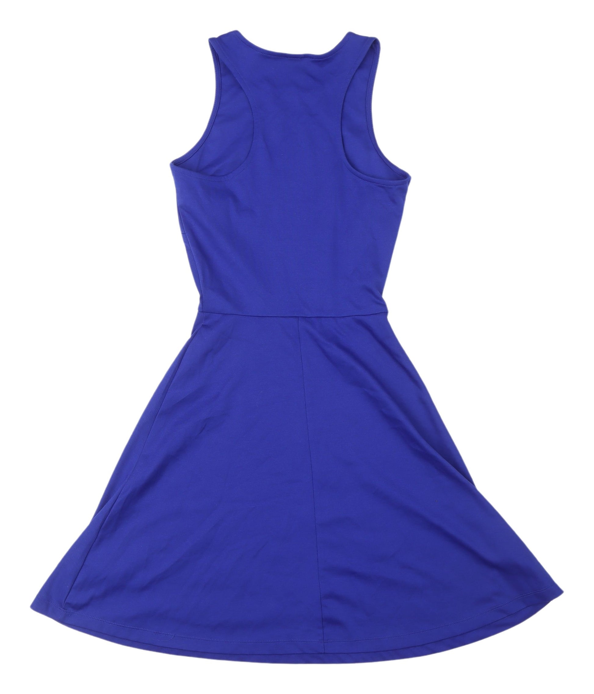 Discover effortless style with this stunning H&M blue A-Line dress, a perfect addition to any wardrobe. Crafted with a flattering silhouette, this sleeveless dress features a comfortable jersey fabric, offering a soft and smooth feel against your skin. The classic scoop neckline enhances the overall elegance, while the pullover closure ensures easy wear. The dress is made from a high-quality blend of polyester, viscose, and elastane, providing both durability and flexibility. Ideal for a variety of occasions, this versatile dress can be dressed up or down, making it a must-have for any season. The vibrant blue colour adds a pop of brightness, ensuring you stand out with grace and sophistication. Perfect for women who appreciate style and comfort, this dress is brand new with tags, reflecting its impeccable quality and condition. Whether you're heading to a casual outing or a special event, this dress offers a chic and contemporary option for any occasion.
