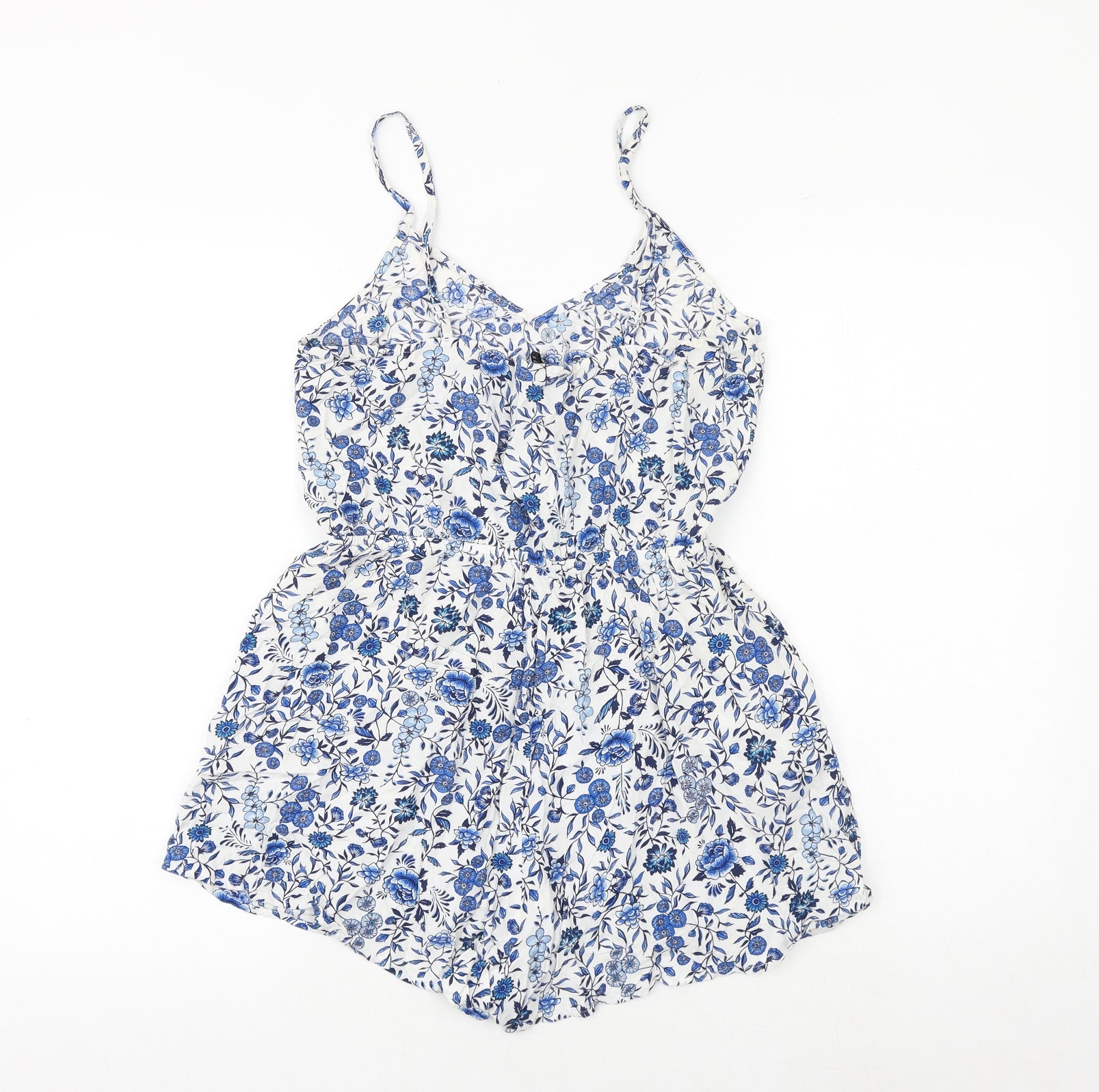 Womens Blue Floral Viscose Playsuit One-Piece Size 10 Pullover