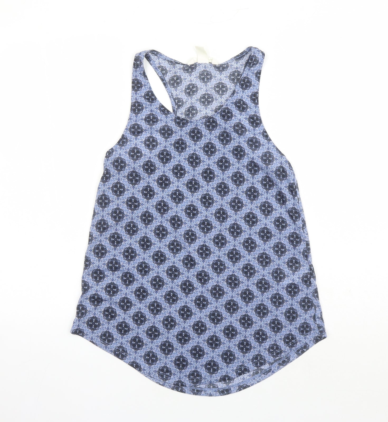 Womens Blue Geometric Polyester Basic Tank Size XS Round Neck
