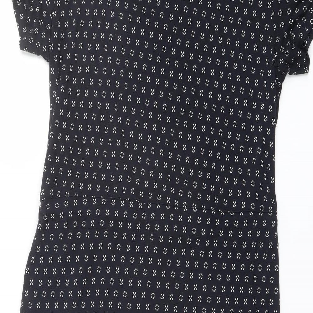 Womens Blue Geometric Viscose T-Shirt Dress Size M Round Neck Pullover
