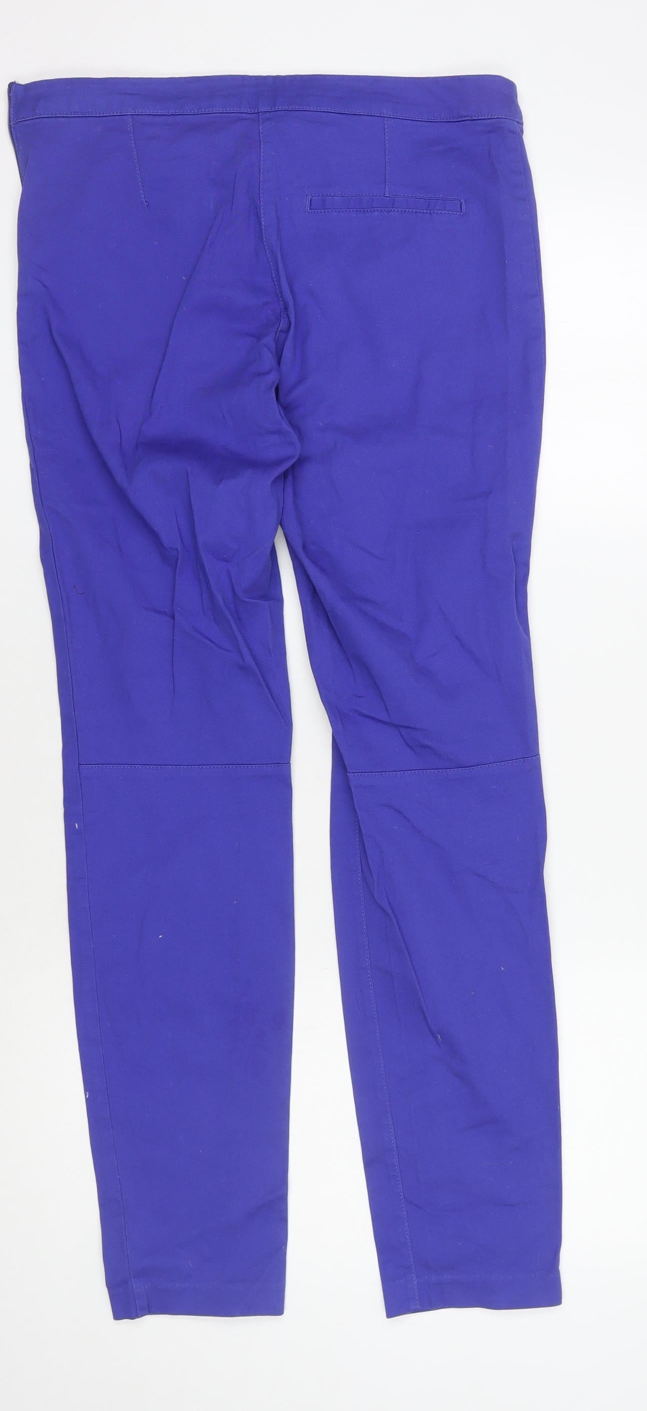Elevate your casual wardrobe with these stylish blue jegging trousers from H&M. Designed for women, these size 12 jeggings offer a regular fit that flatters every shape. Crafted from 98% cotton and 2% elastane, they provide a comfortable, stretchy fit that's perfect for daily wear. The mid-rise and skinny leg design give a chic, streamlined look, while the pull-on closure ensures easy wearability. Ideal for spring and summer occasions, these trousers can be paired effortlessly with your favourite tops for a relaxed yet trendy ensemble. Despite minor wear, they're in very good condition, ready to add a pop of colour to your outfit.
