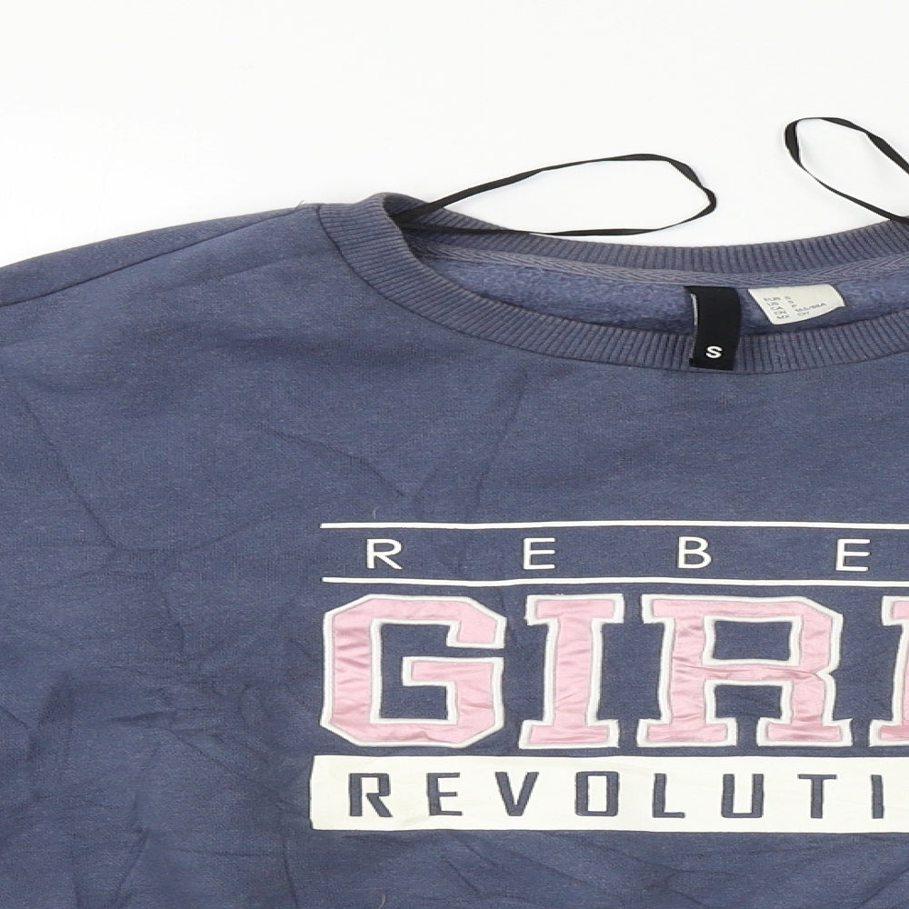 H&M Women Blue Boat Neck Knit Pullover Jumper Size S